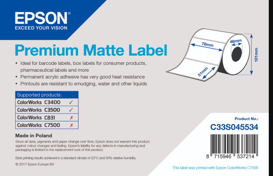 Epson Premium - Matte, gestanzte Etiketten - 76 x 51 mm - 650 Etikett(en) - für Epson TM-C3400-LT 1 Rolle(n) x 650