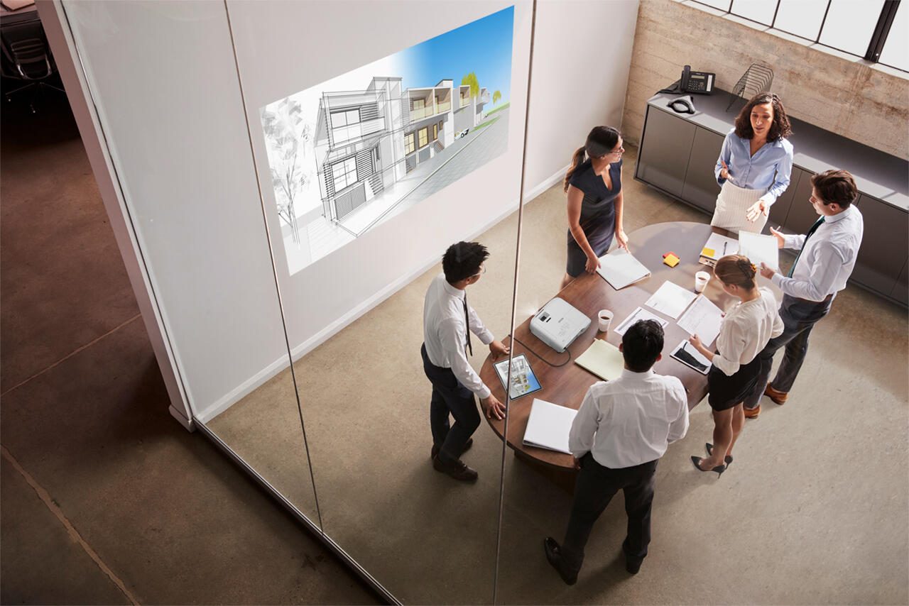 Erleben Sie mit diesem erschwinglichen Full-HD-Lampenprojektor fesselnde Unterhaltung und dynamische Geschäftspräsentationen. Er ist kompakt und leicht, lässt sich einfach einrichten und bietet Hightech-Funktionen sowie eine große Projektionsfläche von bis zu 304 Zoll (ca. 7,72 m). Dank der 3LCD-Technologie von Epson mit einer Lichtleistung von 4.100 Lumen genießen Sie selbst bei hellem Umgebungslicht lebendige, detaillierte und lebensechte Bilder
