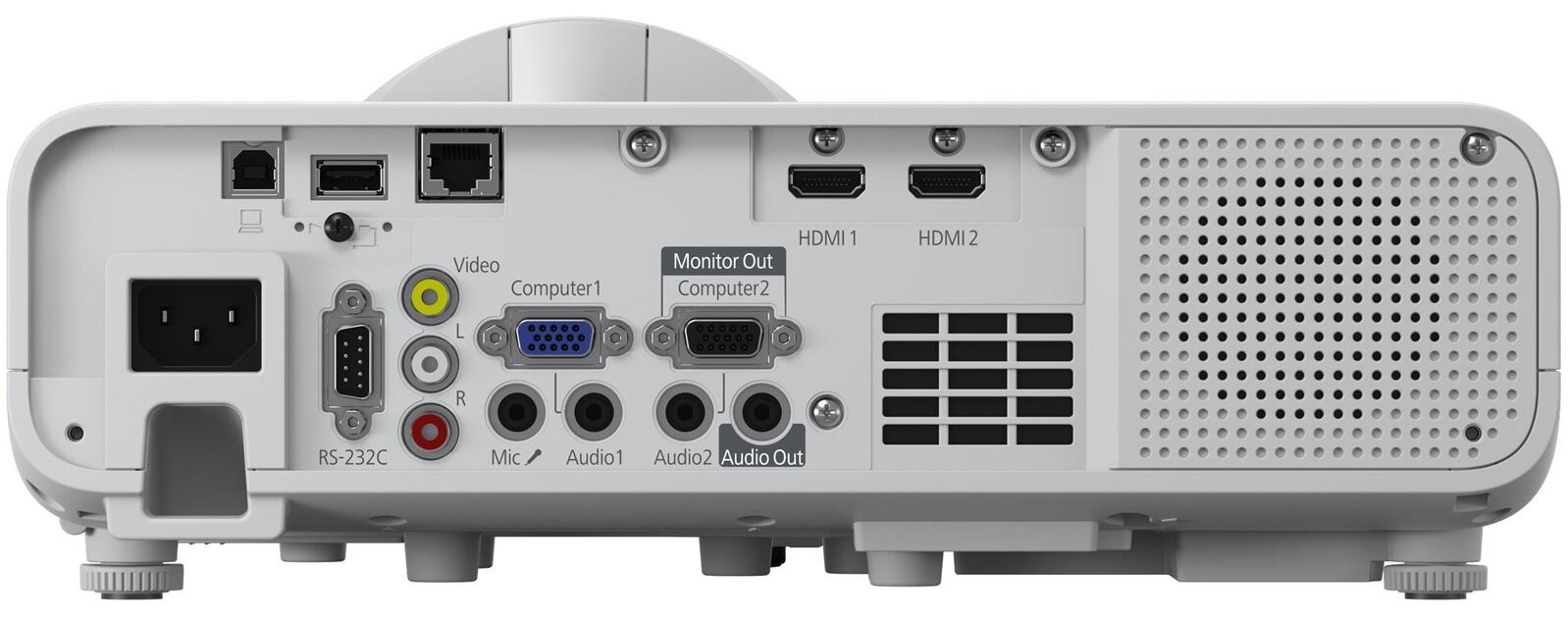 Vielseitige kabelgebundene und kabellose Verbindungsoptionen, einschließlich Miracast™-Spiegeln von Bildschirminhalten, sorgen für müheloses Teilen von Inhalten auf mehreren Geräten. Mit einer optionalen Epson Dokumentenkamera können Dokumente, Präsentationen oder 3D-Objekte in atemberaubender Detailtreue groß projiziert werden. Mit dem USB 2A-Ausgang können auch HDMI-Streaming-Sticks angeschlossen werden, was weitere Möglichkeiten eröffnet.