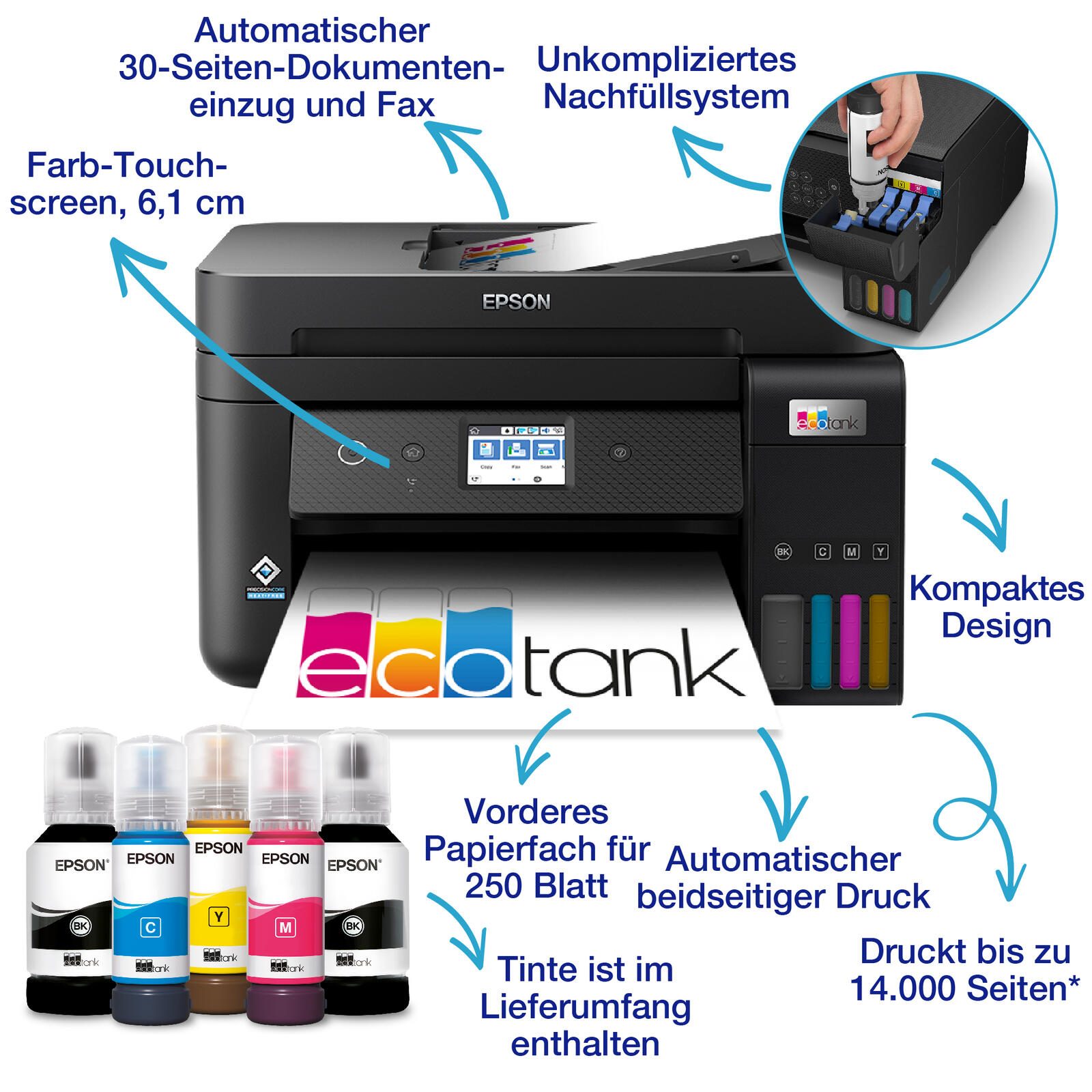 Epson EcoTank ET-4850 A4-Tintentank-Multifunktionsdrucker A4, 4in1, Drucker, Scanner, Kopierer, Fax, 3 Jahre Tinte im Lieferumfang enthalten