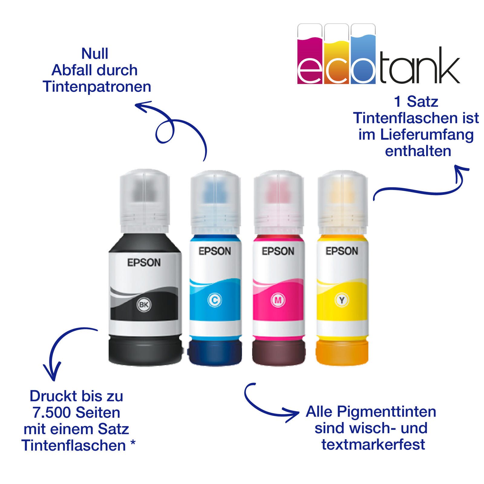 - Günstige Seitenkosten. Epson Original Nachfülltinte in kostengünstigen Flaschen erhältlich