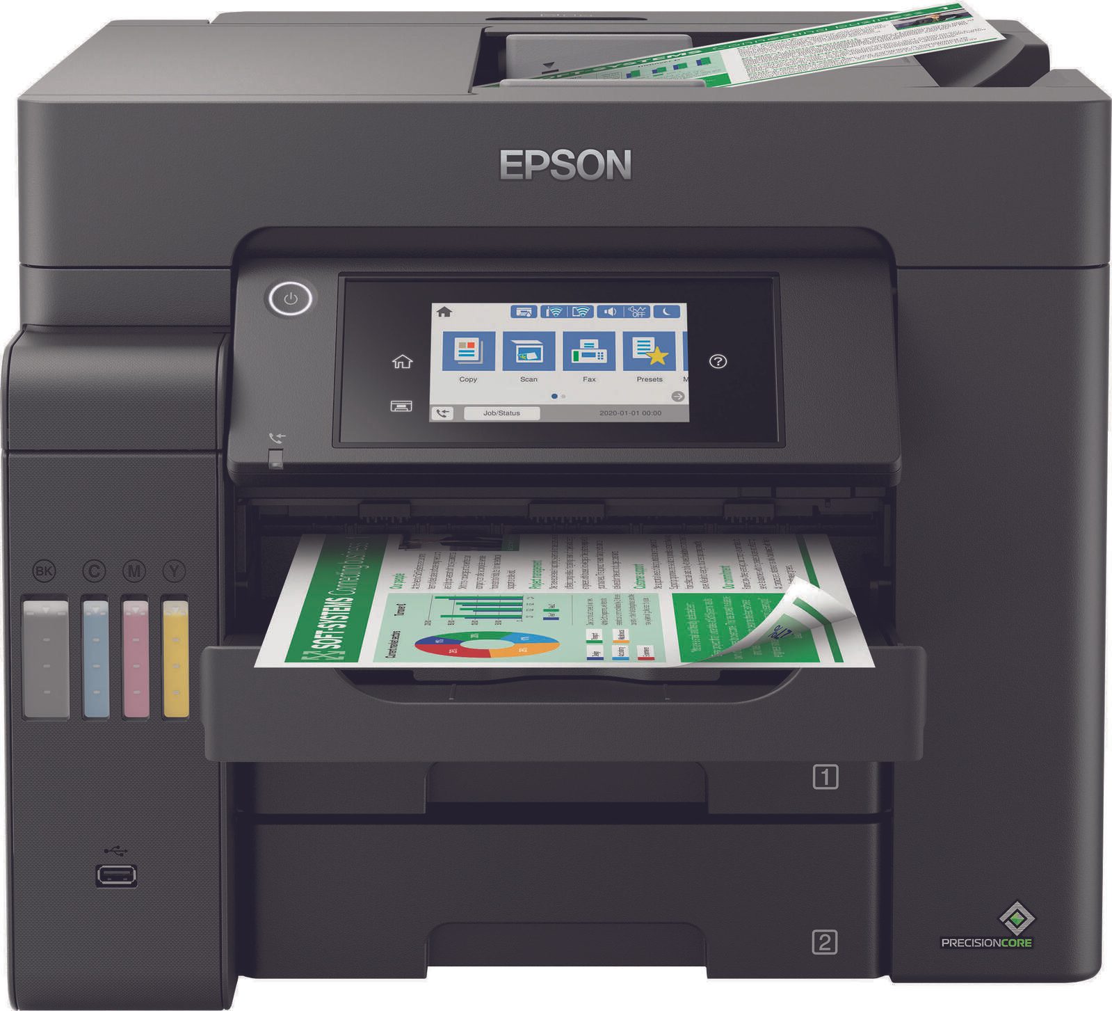 Benutzerfreundlich und zuverlässig Die Nutzung des EcoTank-Druckers ist nicht nur dank der zahlreichen Funktionen ein Kinderspiel. Die wiederverschließbaren, benutzerfreundlichen Tintenflaschen ermöglichen einfaches und sauberes Be- und Nachfüllen der großen Tintentanks an der Vorderseite. Dieser Drucker verfügt über einen PrecisionCore-Druckkopf mit Heat-free Technology, der keine Wärme für den Druck benötigt und sich durch Geschwindigkeit, Zuverlässigkeit und Effizienz sowie eine lange Nutzungsdauer auszeichnet. |