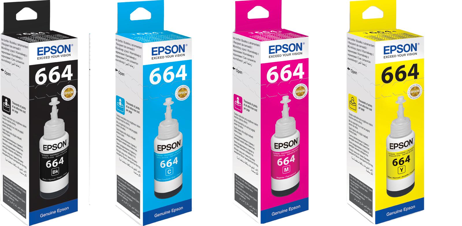 Epson Original T664 Nachfülltinte 4er Set schwarz, cyan, magenta, gelb C13T664140, C13T664240, C13T664340, C13T664440