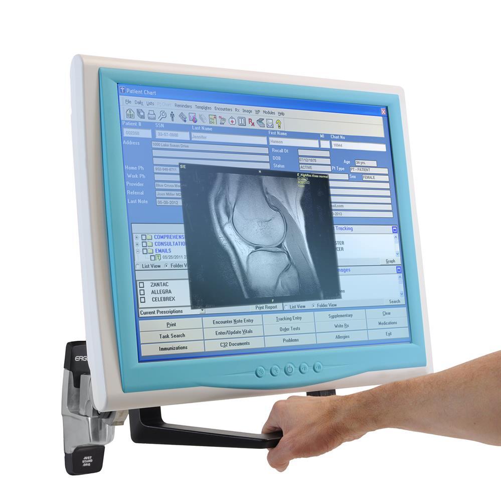 Ein an der Displayhalterung angebrachter Griff ermöglicht einfache Verstellungen. Bringen Sie Ihren Bildschirm schnell und einfach in die gewünschte Position.