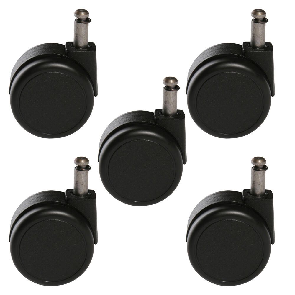 Die Topstar Stuhlrollen für Teppichböden bieten eine ideale Lösung für alle, die Wert auf Funktionalität und Qualität legen. Diese hochwertigen Rollen sind speziell für die Verwendung auf Teppichböden konzipiert und gewährleisten eine mühelose Beweglichkeit deines Bürostuhls oder Drehstuhls. Mit einem eleganten Farbton in Schwarz fügen sie sich harmonisch in jede Umgebung ein und sorgen dafür, dass dein Arbeitsplatz nicht nur funktional, sondern auch stilvoll bleibt. Hergestellt aus robustem Kunststoff, zeichnen sich die Topstar Stuhlrollen durch ihre Langlebigkeit und Widerstandsfähigkeit aus. Sie sind darauf ausgelegt, den Anforderungen des täglichen Gebrauchs standzuhalten und bieten gleichzeitig einen sanften Lauf auf Teppichoberflächen. Dies minimiert das Risiko von Beschädigungen am Boden und sorgt für ein angenehmes Nutzungserlebnis, egal ob im Homeoffice oder im Büro. Die Verpackungseinheit umfasst fünf Stuhlrollen, was dir die Möglichkeit gibt, mehrere Stühle auszurüsten oder einen bestehenden Stuhl mit neuen Rollen zu versehen. Die einfache Montage ermöglicht es dir, die Rollen schnell und ohne großen Aufwand zu wechseln. So kannst du die Funktionalität deines Stuhls sofort verbessern und gleichzeitig die Optik deines Arbeitsplatzes aufwerten. Dank ihrer speziellen Konstruktion sind die Topstar Stuhlrollen für Teppichböden nicht nur praktisch, sondern tragen auch zur Ergonomie deines Arbeitsplatzes bei. Sie ermöglichen eine einfache und leise Bewegung, was besonders in ruhigen Arbeitsumgebungen von Vorteil ist. Vertraue auf die Qualität und das durchdachte Design von Topstar, um deine Mobilität am Arbeitsplatz zu optimieren und gleichzeitig den Komfort zu steigern.Technische Daten