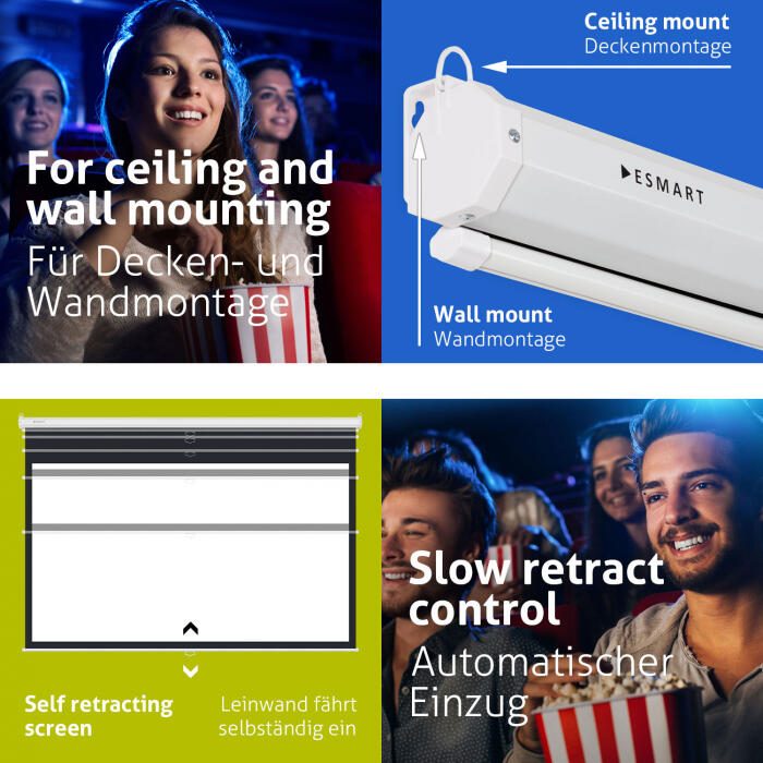 Die ESMART Economy EXR Rollo Leinwand bietet eine Vielzahl von Funktionen.