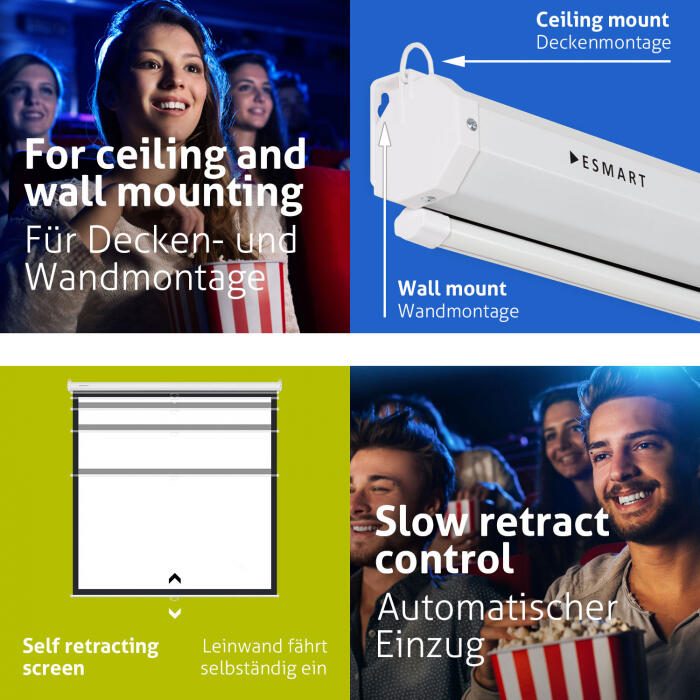 Die ESMART Economy EXR Rollo Leinwand bietet eine Vielzahl von Funktionen.