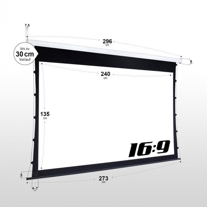 - Leinwandgehäuse: 296 cm x 9 cm x 7,5 cm (B x H x T)