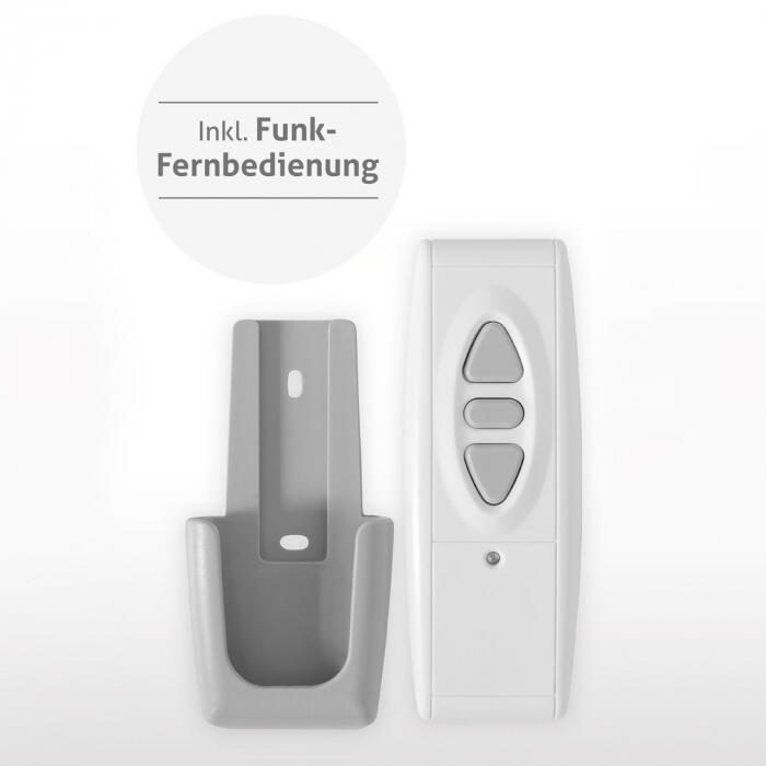 - Bedienung über mitgelieferte Wandsteuerung oder Funkfernbedienung