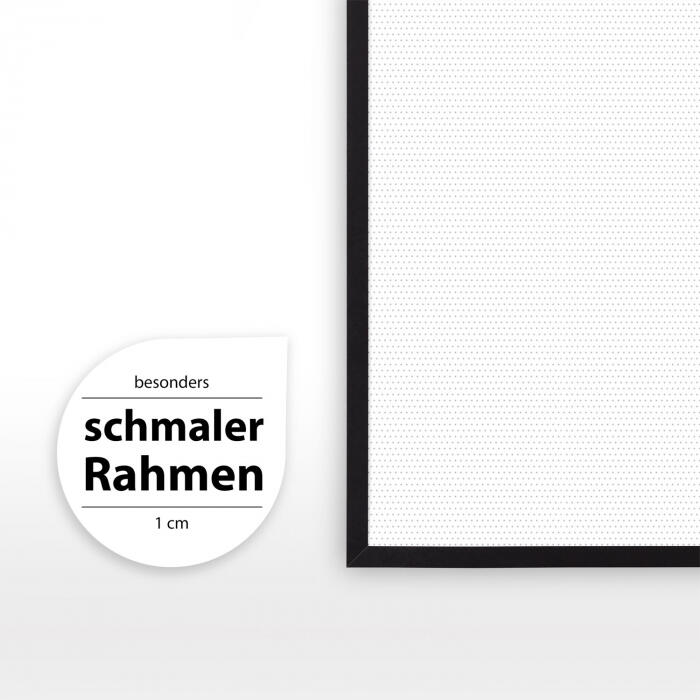 - schwarzer Rahmen mit Velours-Bespannung erhöht den Kontrast