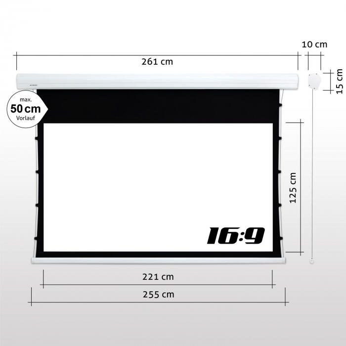 - Leinwandgehäuse: 261 cm x 15 cm x 10 cm (B x H x T)