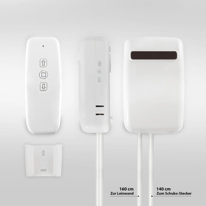 ?Die XTR Tension-Leinwand kann über die mitgelieferte Wandsteuerung oder die mitgelieferte Funkfernbedienung bedient werden.