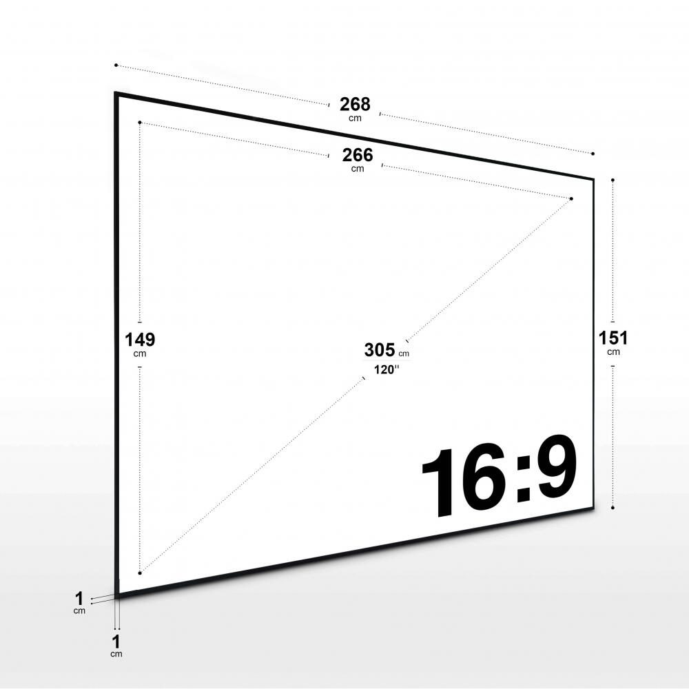 266 x 149 cm 16:9, für Ultrakurzdistanzbeamer