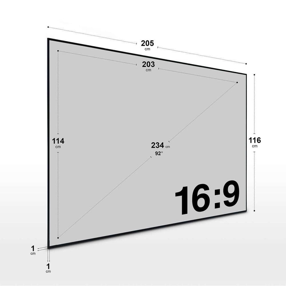 eSmart Expert UKD Tageslicht Rahmen Leinwand 234 cm 92 Zoll GRAU 203 x 114 cm, 16:9, für Ultrakurzdistanzbeamer