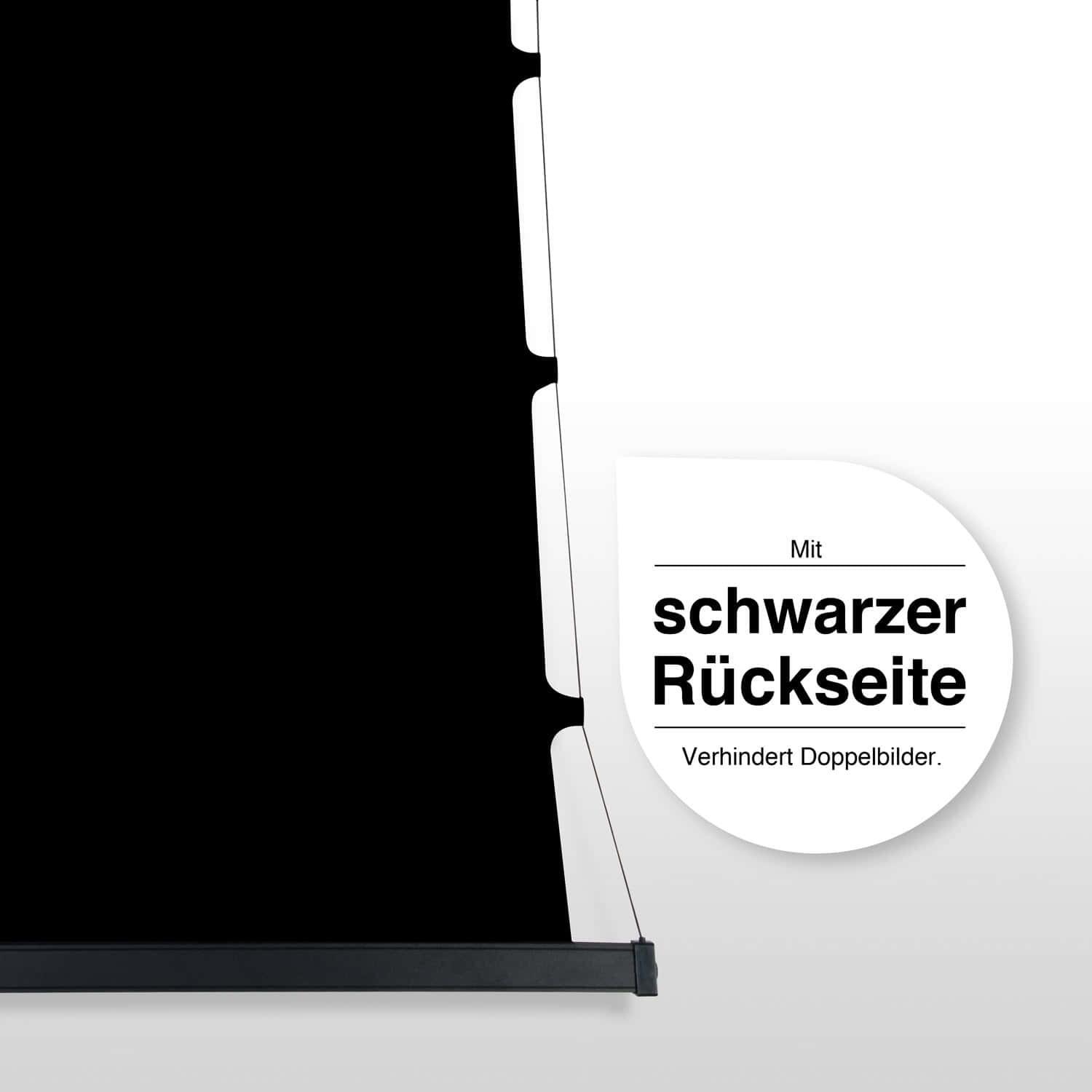 - gesteigerter Kontrasteindruck bei nicht abgedunkelten Räumen durch grauen Leinwandstoff