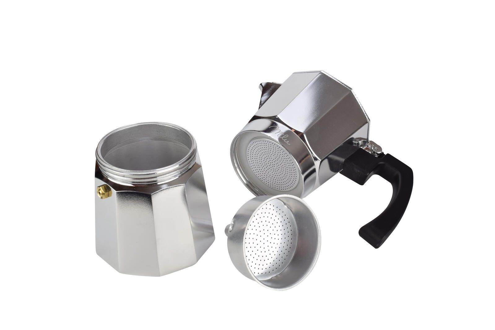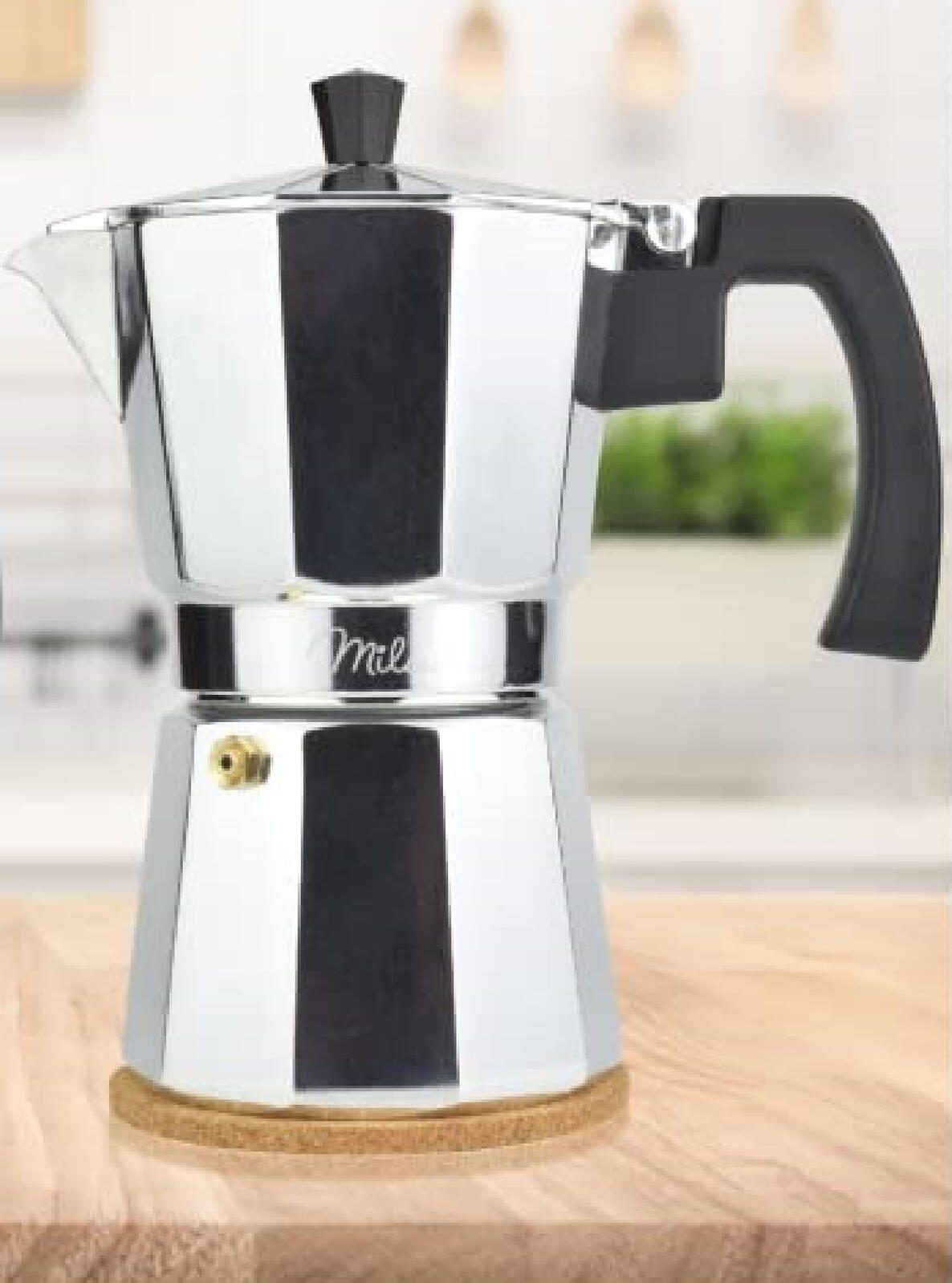 Der Milu 3 Tassen Espressokocher in elegantem silber/schwarz ist die perfekte Wahl für Kaffeeliebhaber, die Wert auf Tradition und Qualität legen. Mit diesem manuellen Espressokocher bereitest du in kürzester Zeit aromatischen Espresso, der dich mit seinem vollmundigen Geschmack begeistert. Das ansprechende Design kombiniert Funktionalität mit Stil und macht ihn zu einem echten Blickfang in deiner Küche. Der Espressokocher ist speziell für die Zubereitung von bis zu drei Tassen Espresso konzipiert. Die handliche Größe von 15.5 cm x 9 cm x 15.5 cm ermöglicht eine einfache Handhabung und eine platzsparende Aufbewahrung. Der Milu Espressokocher ist nicht induktionsgeeignet, was ihn ideal für den Einsatz auf Gas- oder Elektroherden macht. Die manuelle Betriebsart gibt dir die Kontrolle über den Brühprozess, sodass du die Stärke und den Geschmack deines Espressos nach deinen Vorlieben anpassen kannst. Das Set wird mit nützlichen Zubehörteilen geliefert, darunter ein Untersetzer, eine Kaffeelöffel, eine Reinigungsbürste und eine praktische Tragetasche. Diese Extras machen die Zubereitung und Lagerung deines Espressokochers noch komfortabler und sorgen dafür, dass du immer bestens ausgestattet bist. Die beiliegende Anleitung führt dich Schritt für Schritt durch den Brühprozess, sodass du im Handumdrehen zu deinem perfekten Espresso gelangst. Die Kombination aus hochwertigem Material und durchdachtem Design sorgt nicht nur für eine lange Lebensdauer, sondern auch für eine gleichmäßige Wärmeverteilung, die für einen optimalen Brühvorgang unerlässlich ist. Mit dem Milu 3 Tassen Espressokocher holst du dir ein Stück italienische Kaffeekultur in dein Zuhause und verwöhnst dich und deine Gäste mit köstlichem Espresso, der jeden Kaffeegenuss zu einem besonderen Erlebnis macht.Technische Daten