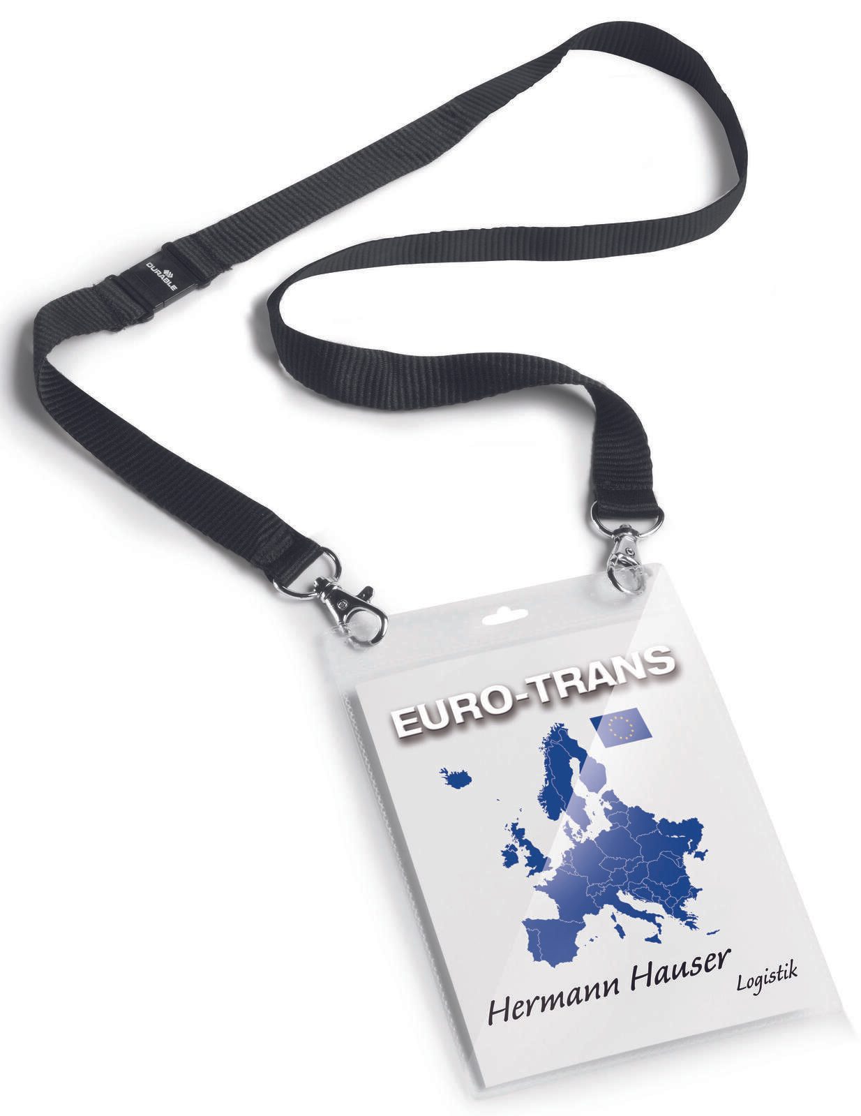 Die DURABLE Namensschilder in elegantem Schwarz sind die perfekte Lösung für alle, die bei Messen, Konferenzen oder Seminaren einen professionellen Eindruck hinterlassen möchten. Mit den Maßen von 10.5 cm x 14.8 cm bieten diese Einsteckschildchen ausreichend Platz für deinen Namen und weitere Informationen, sodass du jederzeit gut erkennbar bist. Die Verwendung von hochwertiger PP-Folie sorgt nicht nur für eine ansprechende Optik, sondern auch für eine hohe Langlebigkeit und Widerstandsfähigkeit der Namensschilder. Die schwarze Farbe verleiht den Namensschildern eine zeitlose Eleganz und lässt sich problemlos mit verschiedenen Outfits kombinieren. Dank des praktischen Textilbands kannst du die Schilder bequem um den Hals tragen, was für zusätzlichen Komfort sorgt. Diese durchdachte Befestigungsmethode ermöglicht es dir, die Namensschilder schnell und einfach anzulegen und abzunehmen. Ein Pack enthält zehn Stück dieser vielseitigen Namensschilder, sodass du bestens für größere Veranstaltungen gerüstet bist. Egal, ob du an einer Messe teilnimmst, eine Konferenz besuchst oder ein Seminar leitest, die DURABLE Namensschilder tragen dazu bei, dass du und deine Kollegen stets gut identifiziert werden. Durch ihre einfache Handhabung und das ansprechende Design sind sie eine ideale Wahl für alle, die Wert auf Professionalität legen. Vertraue auf die Qualität von DURABLE und sorge dafür, dass du bei deinem nächsten Event im besten Licht erscheinst. Die Namensschilder sind nicht nur funktional, sondern auch ein stilvolles Accessoire, das deine Präsentation unterstreicht.Technische Daten