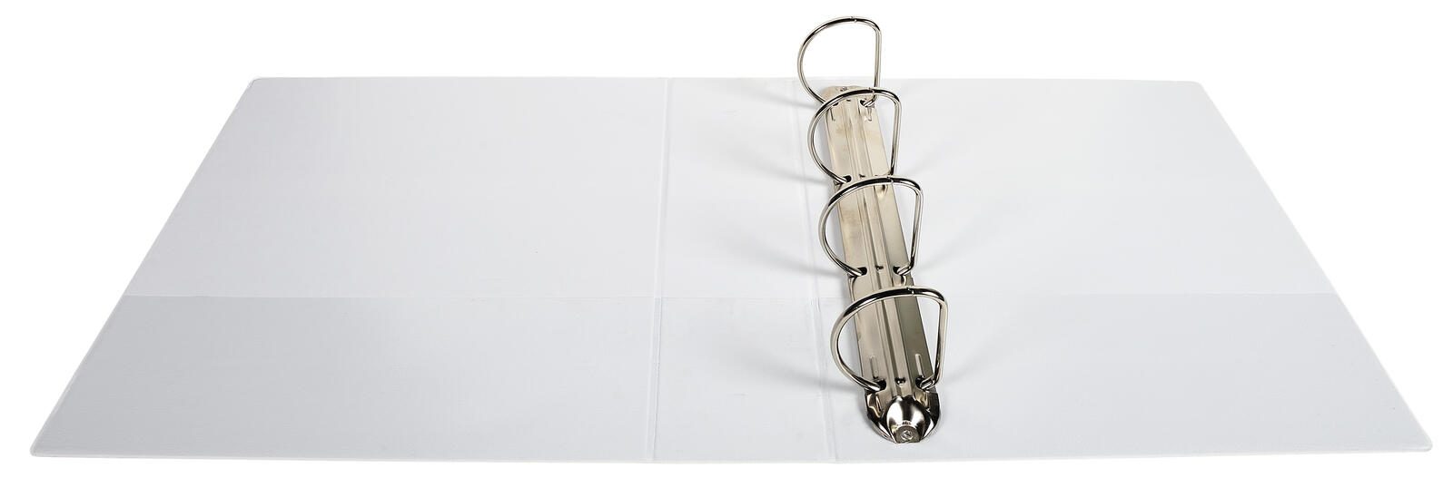 Das Ringbuch ist in einem schlichten Weiß gehalten und besteht aus Polypropylen (PP), einem robusten und langlebigen Kunststoffmaterial. Die Oberfläche ist innen und außen mit diesem Material versehen, was das Ringbuch widerstandsfähig gegen Abnutzung macht und gleichzeitig eine angenehme Haptik bietet. Es verfügt über keinen Niederhalter und keinen Kantenschutz, wodurch das Design klar und funktional bleibt.