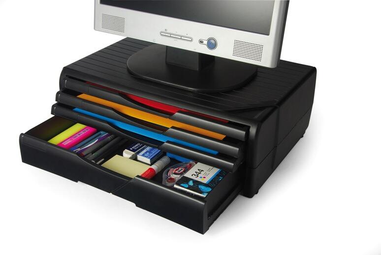 Ein weiterer Vorteil des EXPONENT Monitorständers ist die Möglichkeit, zusätzlichen Stauraum zu schaffen. Unter dem Ständer können Dokumente, Notizen oder andere Büromaterialien verstaut werden, sodass Ihr Arbeitsplatz stets aufgeräumt und organisiert bleibt. Dies fördert nicht nur die Produktivität, sondern trägt auch zu einem angenehmeren Arbeitsumfeld bei.
