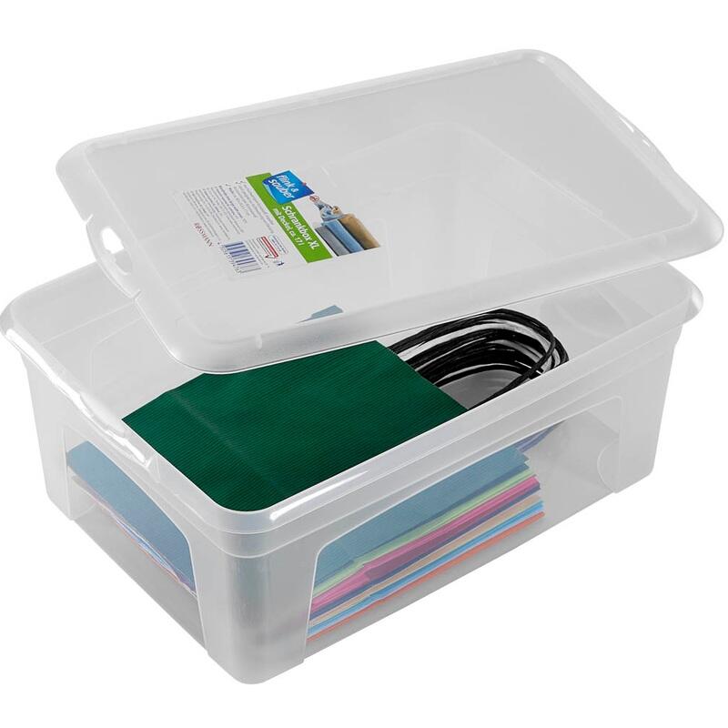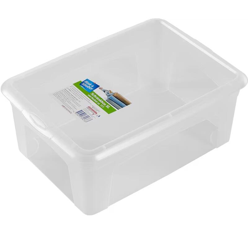Die flink & sauber Aufbewahrungsbox mit einem Fassungsvermögen von 10,0 l ist die ideale Lösung für all deine Aufbewahrungsbedürfnisse. Mit Außenmaßen von 38,0 x 26,0 x 14,0 cm bietet sie ausreichend Platz für Dekomaterial, Haushaltswaren, Zeitschriften, Briefumschläge und Spielwaren. Die transparente Farbe ermöglicht es dir, den Inhalt auf einen Blick zu erkennen, was die Organisation deiner Gegenstände erheblich vereinfacht. Hergestellt aus robustem Kunststoff, ist diese Aufbewahrungsbox nicht nur langlebig, sondern auch leicht zu reinigen. Der praktische Deckel schützt deine Dinge vor Staub und Schmutz, während die stapelbare Bauweise dafür sorgt, dass du Platz sparen kannst. So bleibt dein Zuhause stets ordentlich und aufgeräumt. Auch wenn die Box nicht ineinander stapelbar ist, bietet sie dennoch eine platzsparende Lösung, wenn sie nicht in Gebrauch ist. Die flink & sauber Aufbewahrungsbox ist vielseitig einsetzbar und eignet sich hervorragend für verschiedene Anwendungen im Haushalt. Ob zur Aufbewahrung von Spielzeug im Kinderzimmer oder zur sicheren Verwahrung von Büromaterialien – diese Box ist ein wahres Multitalent. Bitte beachte, dass die Box nicht lebensmittelecht ist, was sie ideal für die Aufbewahrung von nicht essbaren Gegenständen macht. Mit der Bezeichnung des Herstellers "F&S Allzweckbox gr. mit Deckel" erhältst du ein Produkt, das Funktionalität und ansprechendes Design vereint. Entscheide dich für die flink & sauber Aufbewahrungsbox und bringe Ordnung in dein Zuhause!Technische Daten