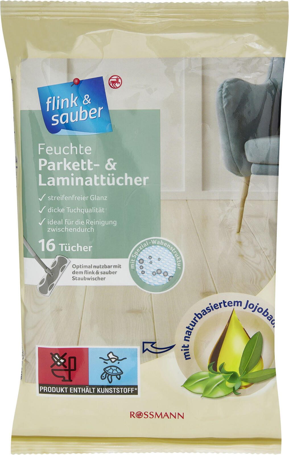Die flink & sauber Bodentücher aus Mikrofaser sind die perfekte Lösung für eine gründliche und effiziente Reinigung deiner Böden. Mit ihrer staubbindenden Eigenschaft sorgen diese Tücher dafür, dass Schmutz und Staub mühelos aufgenommen und festgehalten werden. Egal, ob du Fliesen, Laminat oder Parkett wischst, die Mikrofaser-Technologie ermöglicht ein gründliches und schonendes Wischen, ohne die Oberfläche zu beschädigen. Die Bodentücher sind speziell für den Einsatz beim nass Wischen konzipiert und bieten dir eine hohe Saugkraft, sodass auch hartnäckige Flecken und Verschmutzungen zuverlässig entfernt werden können. Mit einer kompakten Länge von 22 cm sind sie vielseitig einsetzbar und passen perfekt zu den gängigen Wischsystemen. In jeder Packung sind 16 Tücher enthalten, die dir eine langanhaltende Reinigungskraft bieten. Die weiße Farbe der Tücher sorgt nicht nur für ein frisches Aussehen, sondern ermöglicht dir auch eine einfache Sichtbarkeit von Schmutz, sodass du immer weißt, wann es Zeit ist, das Tuch zu wechseln. Die flink & sauber Bodentücher sind nicht waschbar, was sie besonders praktisch macht, da du nach der Verwendung einfach ein neues Tuch nehmen kannst, um die Hygiene in deinem Zuhause zu gewährleisten. Vertraue auf die Qualität von flink & sauber und erlebe, wie einfach und effektiv die Reinigung deiner Böden sein kann.Technische Daten
