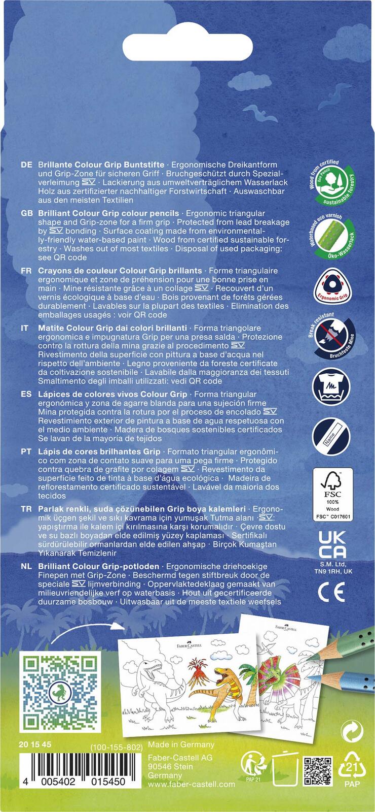 Mit den Fab.Buntst. Grip Dino Buntstiften kannst du kreativ werden und deine Ideen bunt und lebendig gestalten. Die mehrfarbige Schreibfarbe ermöglicht es dir, detailreiche Kunstwerke zu schaffen und deiner Fantasie freien Lauf zu lassen. Das Karton-Etui bietet eine praktische Aufbewahrungsmöglichkeit für die Stifte, damit du sie immer griffbereit hast.