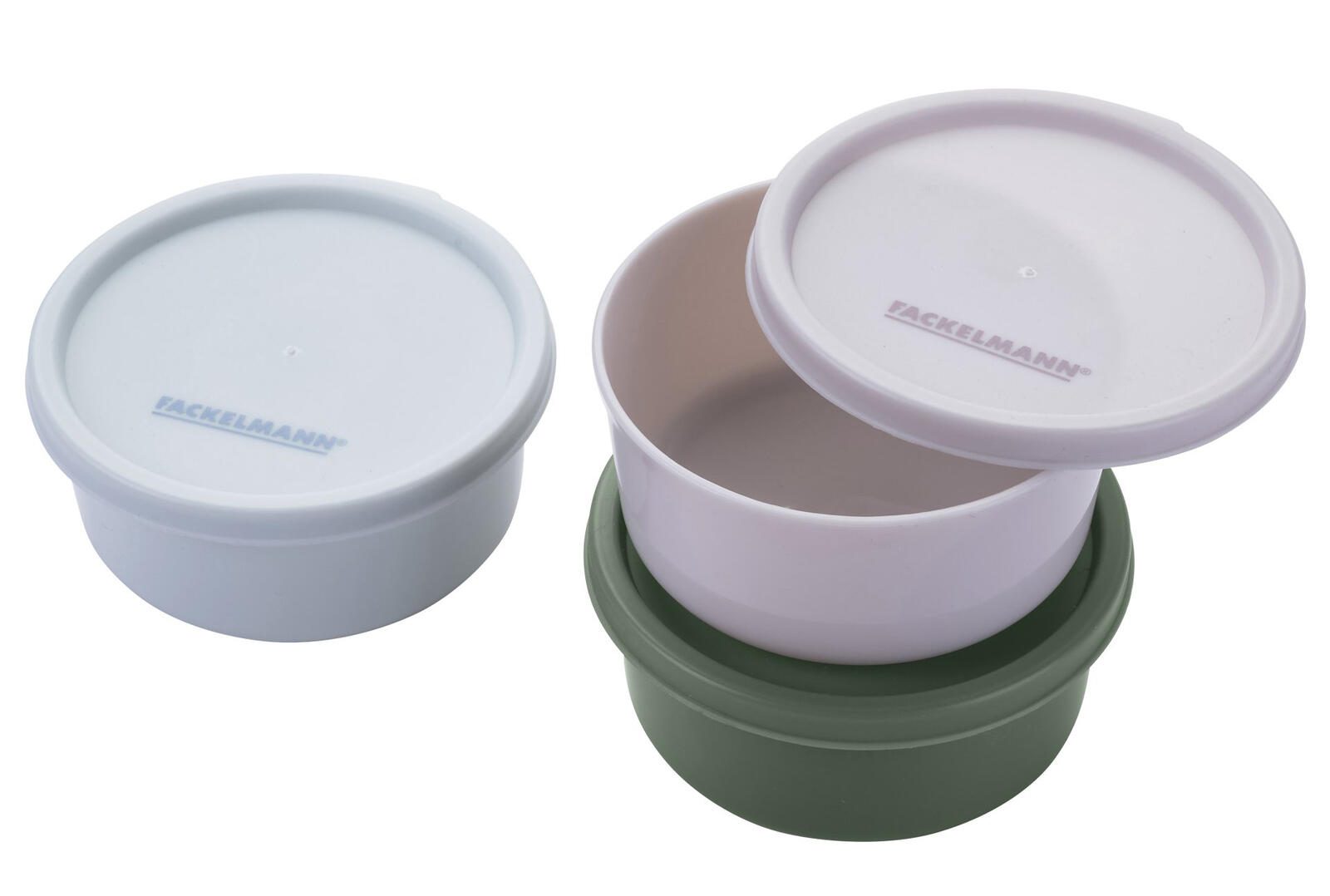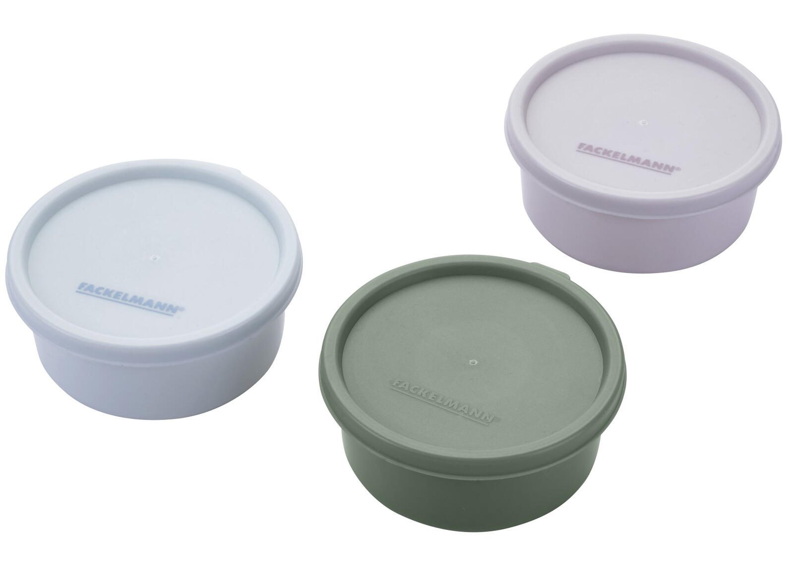 Das Frischhaltedosen-Set „Be The Move“ von FACKELMANN besteht aus drei runden Dosen, die sich ideal zur Aufbewahrung von Lebensmitteln eignen. Die Dosen sind in den ansprechenden Farbtönen graugrün, hellblau und beige gehalten, was für eine dezente und moderne Optik sorgt. Mit diesem Set kannst Du verschiedene Lebensmittel sicher und platzsparend lagern.