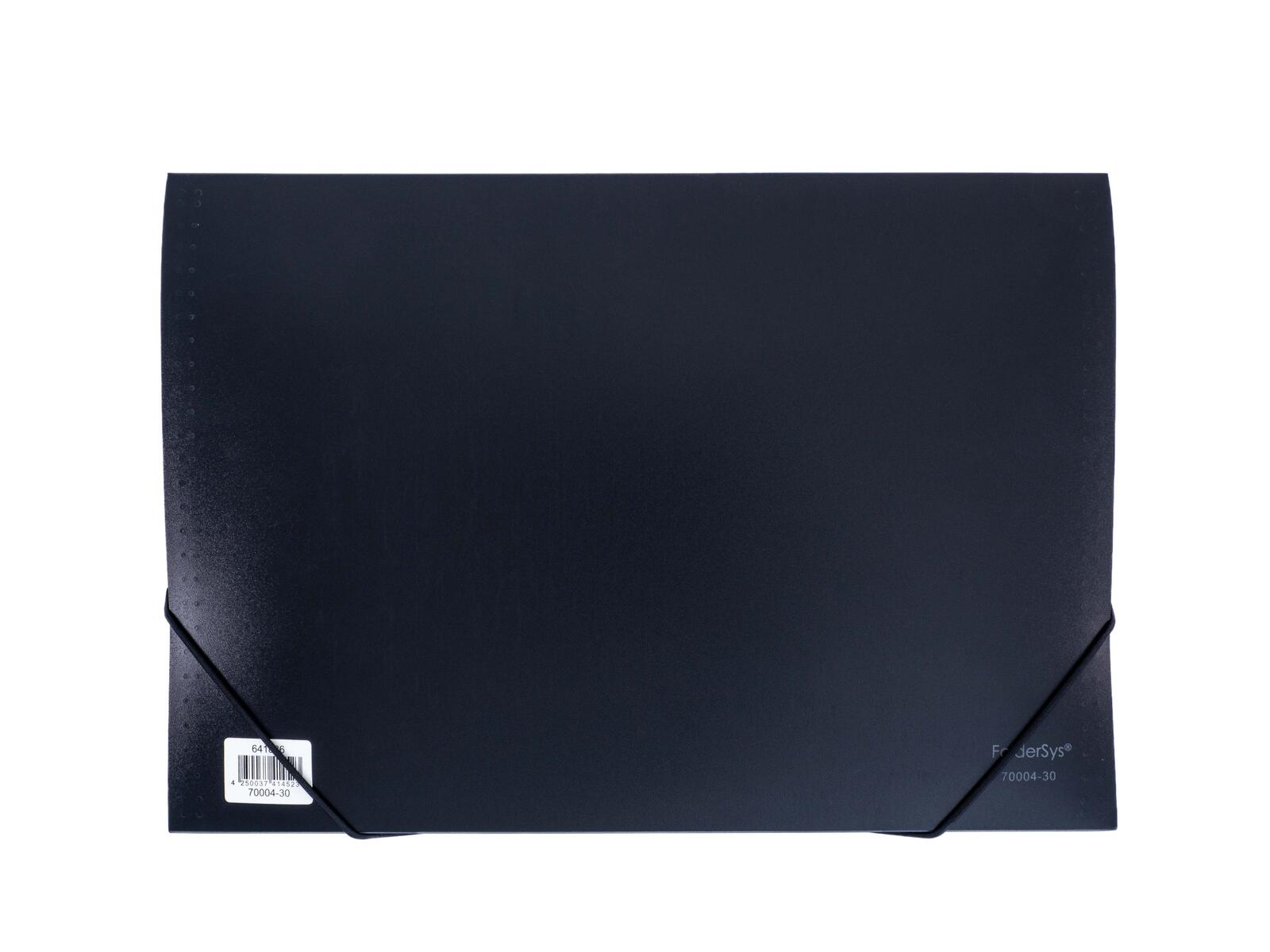 Die FolderSys Fächermappe DIN A4 5-Fach in elegantem Schwarz ist die ideale Lösung für alle, die Ordnung und Struktur in ihre Dokumente bringen möchten. Hergestellt aus hochwertigem Polypropylen (PP) bietet diese Fächermappe nicht nur eine ansprechende Optik, sondern auch eine hohe Strapazierfähigkeit. Mit fünf großzügigen Fächern kannst du bis zu 250 Blatt sicher und übersichtlich ablegen. Die blanko Taben ermöglichen es dir, die Fächer individuell zu beschriften, sodass du jederzeit den Überblick über deine Unterlagen behältst. Egal, ob für Schule, Studium oder Beruf – diese Fächermappe ist perfekt für das Format DIN A4 geeignet und passt problemlos in jede Tasche oder Aktentasche. Die schlichte schwarze Farbe verleiht der Mappe eine zeitlose Eleganz, die sich in jedem Umfeld gut macht. Dank des robusten Materials ist die FolderSys Fächermappe nicht nur leicht, sondern auch langlebig und schützt deine Dokumente vor Knicken und Beschädigungen. Die FolderSys Fächermappe DIN A4 5-Fach ist die praktische Wahl für alle, die ihre Unterlagen effizient organisieren möchten. Mit ihr bist du bestens gerüstet, um deine wichtigen Dokumente sicher und stilvoll zu verwahren.Technische Daten