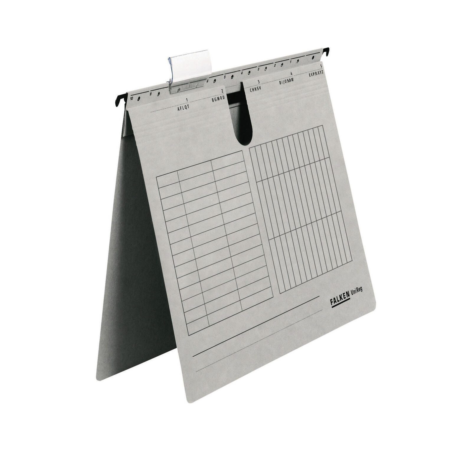Der FALKEN Hängehefter DIN A4 in elegantem grau ist die ideale Lösung für eine organisierte und effiziente Ablage deiner Dokumente. Hergestellt aus hochwertigem Kraftkarton, bietet dieser Hängehefter nicht nur eine ansprechende Optik, sondern auch eine hohe Stabilität und Langlebigkeit. Mit seiner praktischen kaufmännischen Heftung ermöglicht er eine sichere und einfache Aufbewahrung von Unterlagen im DIN A4 Format. Die durchdachte Konstruktion des Hefters sorgt dafür, dass deine Dokumente jederzeit griffbereit sind und nicht verrutschen. Ein besonderes Merkmal ist die einzige Abheftvorrichtung, die dir erlaubt, deine Unterlagen übersichtlich und platzsparend zu organisieren. Egal, ob im Büro, in der Schule oder zu Hause, dieser Hängehefter ist vielseitig einsetzbar und passt sich deinen Bedürfnissen an. Mit einer Packung von 25 Stück bist du bestens ausgestattet, um deine Dokumentenablage zu optimieren und gleichzeitig einen einheitlichen Look zu schaffen. Der dezente graue Farbton verleiht deinem Arbeitsplatz eine professionelle Note und sorgt für ein harmonisches Gesamtbild. Der FALKEN Hängehefter ist nicht nur funktional, sondern auch umweltbewusst, da er aus recycelbarem Material gefertigt ist. So trägst du aktiv zur Schonung der Ressourcen bei, während du deinen Büroalltag effizient gestaltest. Entscheide dich für den FALKEN Hängehefter und bring Ordnung in deine Unterlagen – ganz einfach und stilvoll.Technische Daten