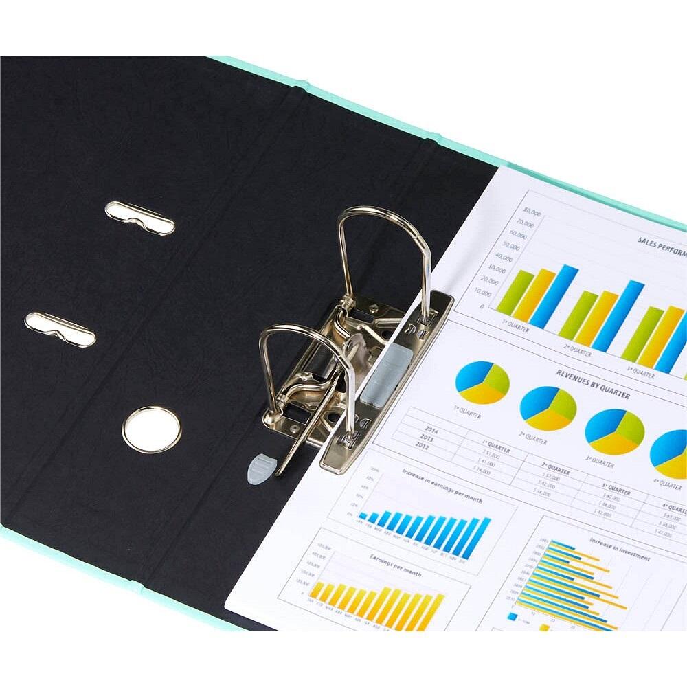 Der FALKEN Pastell Color Ordner in einem ansprechenden minz grünen Farbton kombiniert Funktionalität mit einem modernen Design. Mit einer Rückenbreite von 8,0 cm bietet dieser Ordner ausreichend Platz für deine Dokumente und Unterlagen im DIN A4 Format. Die hochwertige Hebelmechanik sorgt für ein zuverlässiges und einfaches Handling, sodass du deine wichtigen Unterlagen mühelos abheften und entnehmen kannst.