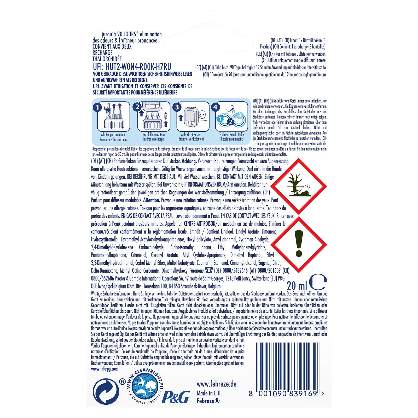 Das Produkt wurde von Febreze entwickelt, einem renommierten Hersteller von Raumduftprodukten. Die Duftnote Thai Orchidee zeichnet sich durch ihre blumige und zugleich erfrischende Note aus, die jeden Raum in einen Wohlfühlort verwandelt.