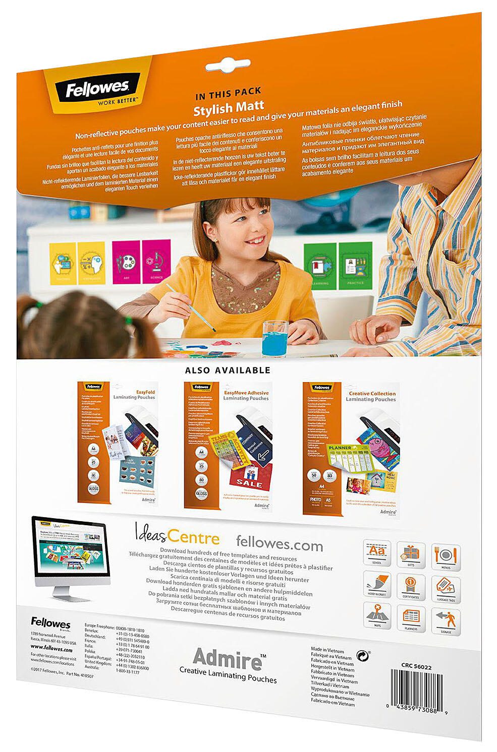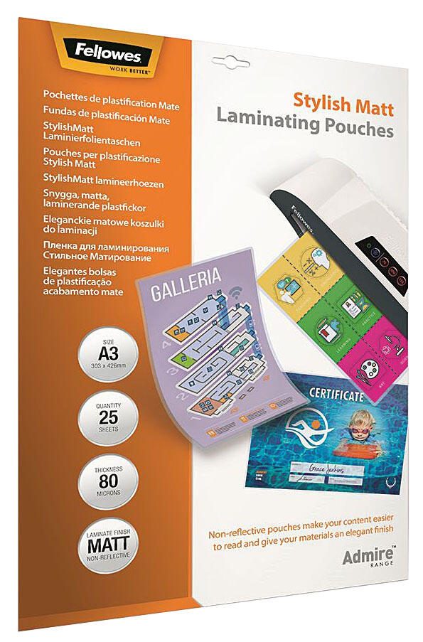 Die Fellowes Laminierfolien in matt mit einer Stärke von 80 Mikron sind die ideale Wahl für alle, die ihre Dokumente, Fotos oder Kunstwerke professionell laminieren möchten. Mit einem Format von A3 bieten diese Folien ausreichend Platz für größere Projekte und Präsentationen. Die matte Oberfläche sorgt dafür, dass deine laminierte Arbeit nicht nur gut aussieht, sondern auch vor unerwünschten Reflexionen geschützt ist, was besonders bei Präsentationen von Vorteil ist. Jede Packung enthält 25 Laminierfolien, sodass du genügend Vorrat hast, um deine wichtigsten Dokumente zu schützen. Die Folien bestehen aus hochwertigem Polyester (PET) und Ethyl-Vinyl-Acetat (EVA), was sie robust und langlebig macht. Die abgerundeten Ecken der Folien tragen zur Sicherheit bei und verhindern ein Abblättern oder Abreißen an den Kanten, was sie besonders benutzerfreundlich macht. Die Fellowes Laminierfolien sind nicht selbstklebend und besitzen keine Lochung, was bedeutet, dass sie sich perfekt für die Anwendung in Laminiergeräten eignen. Du kannst sicher sein, dass deine Dokumente durch die Laminierung nicht nur geschützt, sondern auch in einem ansprechenden Zustand bleiben. Diese Folien sind die perfekte Lösung für alle, die Wert auf Qualität und ein professionelles Finish legen. Egal, ob du wichtige Dokumente für den Beruf, kreative Projekte für die Schule oder persönliche Erinnerungen laminieren möchtest, die Fellowes Laminierfolien matt 80 mikron A3 bieten dir die Qualität und Flexibilität, die du benötigst. Vertraue auf die Marke Fellowes, die für ihre hochwertigen Produkte bekannt ist, und genieße die Vorteile, die diese Laminierfolien dir bieten.Technische Daten