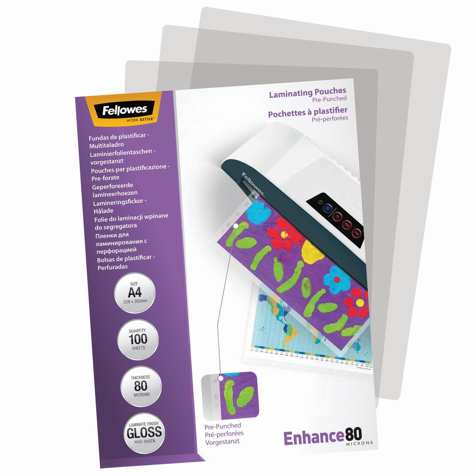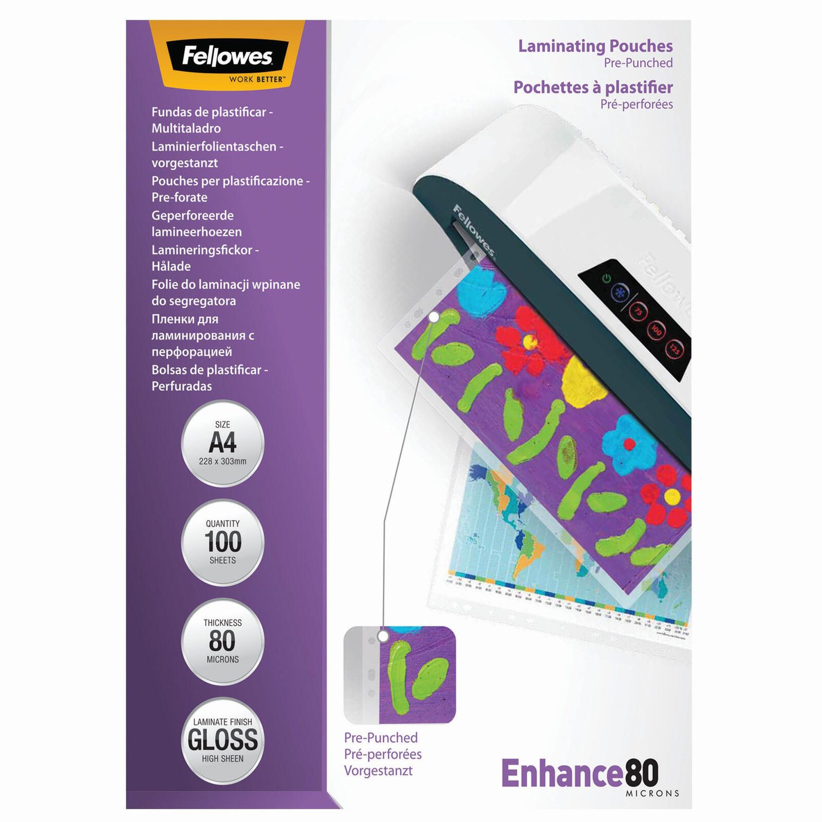 Die Fellowes Laminierfolien glänzend 80 mikron A4 sind die ideale Lösung, um Dokumente, Fotos oder wichtige Unterlagen professionell zu laminieren und sie so vor Abnutzung, Feuchtigkeit und Schmutz zu schützen. Mit einer Folienstärke von 80 Mikron pro Seite bieten diese Folien einen robusten Schutz, der gleichzeitig die Farben und Details deiner Materialien hervorhebt. Die glänzende Oberfläche sorgt dafür, dass deine laminierte Präsentation lebendig und ansprechend aussieht, ideal für den Einsatz im Büro oder im privaten Bereich. Diese Laminierfolien sind speziell für das Format A4 konzipiert, was sie besonders vielseitig macht. Egal, ob du wichtige Geschäftsdokumente, kreative Bastelarbeiten oder Erinnerungsfotos laminieren möchtest, die Fellowes Laminierfolien sind die perfekte Wahl. Jede Packung enthält 100 Folien, sodass du genügend Material zur Verfügung hast, um all deine Projekte zu realisieren. Dank der abgerundeten Ecken wird das Risiko des Abplatzens minimiert, was die Langlebigkeit deiner laminierten Dokumente erhöht. Die Universal-Lochung ermöglicht eine einfache Handhabung und Anpassung an verschiedene Ablagesysteme. Hergestellt aus hochwertigem Polyester (PET), Ethyl-Vinyl-Acetat (EVA) und Low Density Polyethylen (LDPE) garantieren diese Folien nicht nur einen exzellenten Schutz, sondern auch eine umweltfreundliche Option für deine Laminierbedürfnisse. Mit den Fellowes Laminierfolien glänzend 80 mikron A4 investierst du in Qualität und Schutz, die deine Dokumente aufwerten und gleichzeitig ihre Lebensdauer verlängern. Die einfache Handhabung und die hervorragenden Ergebnisse machen diese Laminierfolien zu einem unverzichtbaren Werkzeug für jeden, der Wert auf professionelle Präsentation legt.Technische Daten