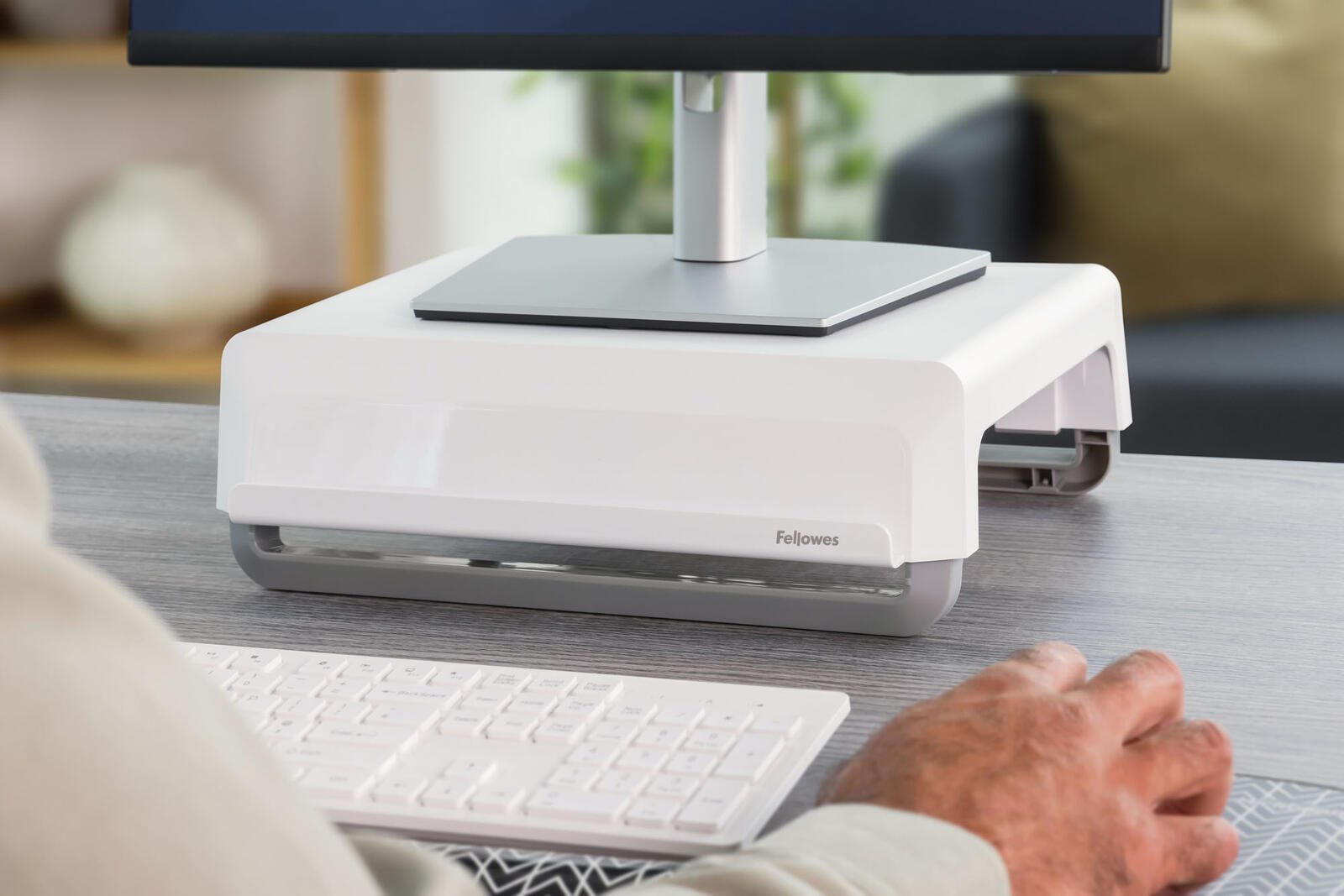 Erleben Sie die Vorteile eines ergonomisch gestalteten Arbeitsplatzes mit dem Fellowes Monitorständer Breyta und genießen Sie eine verbesserte Haltung und mehr Komfort während Ihrer Arbeit. Investieren Sie in Ihre Gesundheit und Produktivität mit diesem durchdachten Monitorständer.