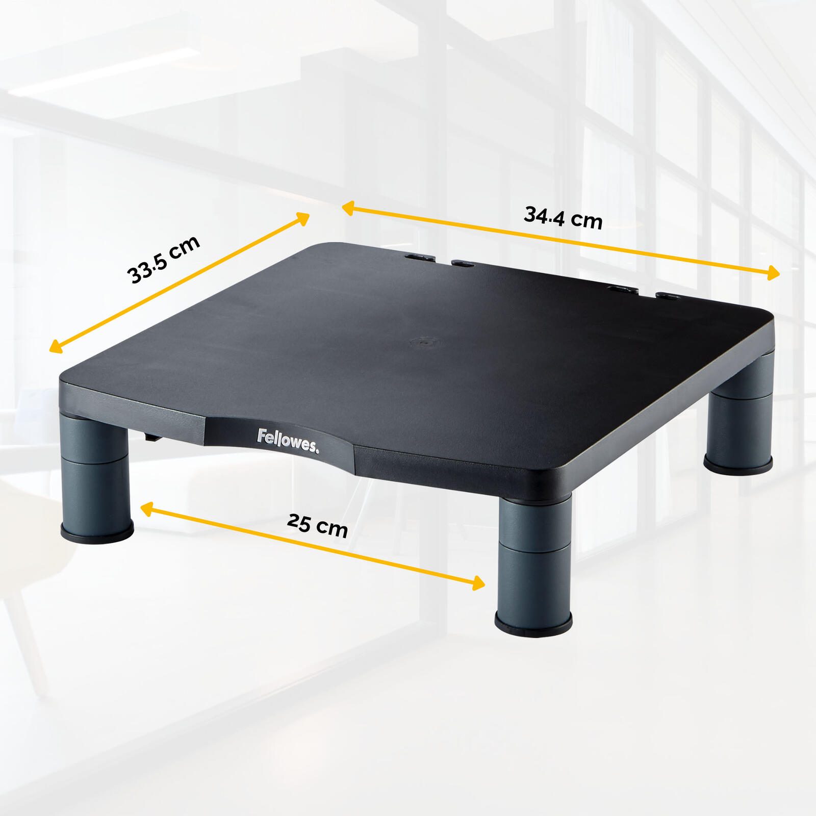 Ein herausragendes Merkmal des Fellowes Monitorständers ist die einstellbare Höhe, die zwischen 5 und 10 cm variiert werden kann. Dadurch können Sie die optimale Sichthöhe für Ihren Monitor einstellen, was nicht nur den Komfort erhöht, sondern auch dazu beiträgt, Nacken- und Rückenschmerzen vorzubeugen. Die Möglichkeit, den Monitor auf die richtige Höhe zu bringen, fördert eine gesunde Körperhaltung und steigert Ihre Produktivität.