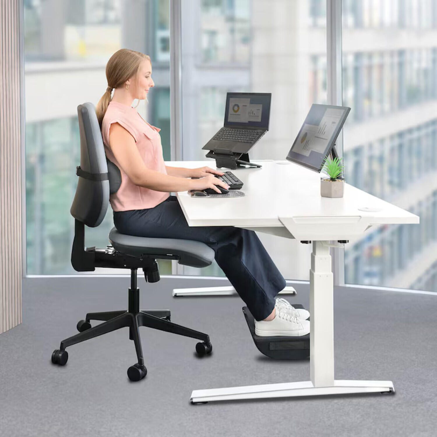 - Die Rückenbeschwerden durch Unterstützung und Förderung einer korrekten ergonomischen Haltung verringern