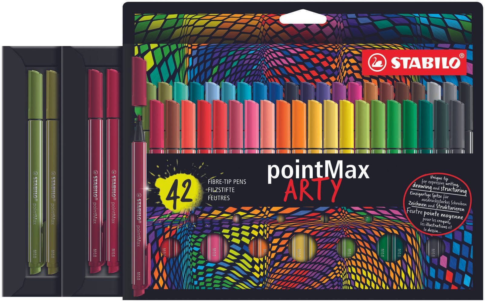 Die STABILO Filzstifte Mehrfarbig 0.8 sind die perfekte Wahl für kreative Köpfe, die Wert auf Qualität und Vielseitigkeit legen. Mit einer feinen Rundspitze von 0.8 mm ermöglichen diese Filzstifte präzise und detaillierte Zeichnungen sowie lebendige Beschriftungen. Die Tinte auf Wasserbasis ist nicht nur geruchsarm, sondern auch wasserlöslich und auswaschbar, was sie ideal für Kinder und kreative Projekte macht. In einem praktischen Pack sind 42 verschiedene Farben enthalten, die eine breite Palette an Möglichkeiten bieten, um deine Ideen zum Leben zu erwecken. Ob für Schulprojekte, Kunstwerke oder einfach zum Ausmalen – die farbsortierten Filzstifte sorgen für ein beeindruckendes Farberlebnis. Die schnell trocknende Tinte verhindert unschöne Verschmierungen und ermöglicht ein reibungsloses Arbeiten ohne lange Wartezeiten. Der sechseckige Griff sorgt für eine angenehme Handhabung und ermöglicht ein ermüdungsfreies Zeichnen, während der integrierte Clip dafür sorgt, dass du die Stifte immer griffbereit hast. Zudem schützt die Schutzklappe die Spitze und verhindert ein Austrocknen der Tinte, sodass du lange Freude an deinen STABILO Filzstiften hast. Die STABILO Filzstifte Mehrfarbig 0.8 sind nicht nur ein unverzichtbares Werkzeug für Künstler und Schüler, sondern auch ein tolles Geschenk für kreative Menschen jeden Alters. Entdecke die Vielfalt und die unendlichen Möglichkeiten, die dir diese hochwertigen Filzstifte bieten.Technische Daten