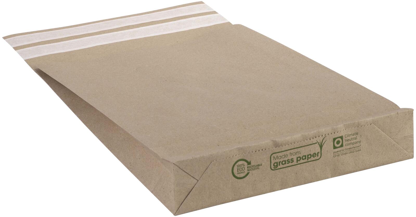 Die flexiPAK classic eco Doppelfixverschluss Faltentaschen aus naturbelassenem Graspapier sind die ideale Lösung für umweltbewusste Verbraucher, die Wert auf Nachhaltigkeit legen. Mit einem Papiergewicht von 100 g/m² bieten diese Faltentaschen nicht nur eine hohe Stabilität, sondern auch eine ansprechende Haptik, die das Handling angenehm macht. Die Taschen sind in einem natürlichen Farbton gehalten, der sich harmonisch in verschiedene Anwendungsbereiche einfügt und den ökologischen Gedanken unterstreicht. Dank der haftklebenden Klebung sind die Taschen besonders einfach zu handhaben und bieten eine Klebegarantie von bis zu einem Jahr. Dies bedeutet, dass du dich auf eine zuverlässige und langanhaltende Versiegelung verlassen kannst, die deine Inhalte sicher schützt. Mit einem praktischen Format von 19x5x30 cm sind die flexiPAK Faltentaschen vielseitig einsetzbar. Ob für den Versand von Produkten, als Geschenkverpackung oder zur Aufbewahrung von Dokumenten, sie sind eine praktische Wahl für viele Gelegenheiten. Die Öffnung erfolgt an der kurzen Seite, was das Befüllen und Entnehmen der Inhalte erleichtert. Ein weiterer Vorteil dieser Taschen ist, dass sie ohne Fenster gestaltet sind, was dir die Freiheit gibt, sie nach deinen eigenen Vorstellungen zu gestalten oder zu beschriften. In einer Packung erhältst du 300 Stück, was sie zu einer wirtschaftlichen Wahl für dein Unternehmen oder für den privaten Gebrauch macht. Die flexiPAK classic eco Doppelfixverschluss Faltentaschen sind nicht nur funktional, sondern tragen auch aktiv zum Umweltschutz bei, da sie aus nachwachsenden Rohstoffen hergestellt werden. Entscheide dich für eine umweltfreundliche Verpackungslösung, die sowohl praktisch als auch nachhaltig ist.Technische Daten