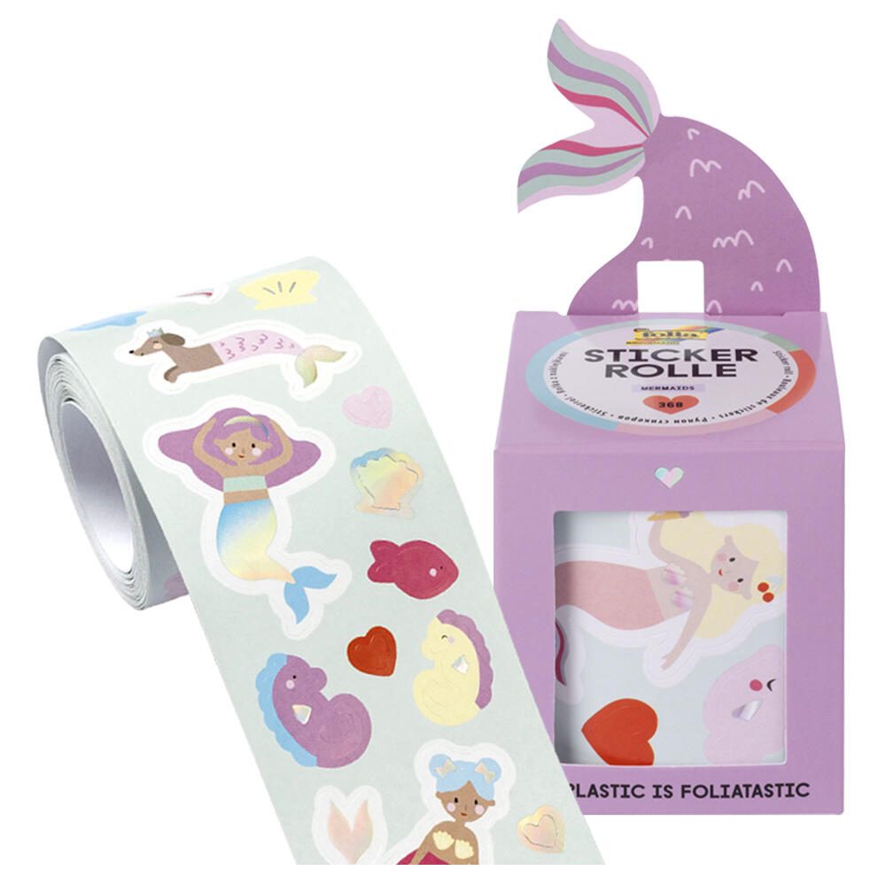 Die selbstklebenden Eigenschaften der folia Stickerrolle Mermaid garantieren eine einfache Handhabung. Sie lassen sich problemlos anbringen und bei Bedarf auch wieder ablösen, ohne Rückstände zu hinterlassen. Dies macht sie besonders nützlich für temporäre Dekorationen oder für kreative Bastelideen, bei denen eine Anpassung erforderlich ist. Die Anordnung auf einer praktischen Rolle ermöglicht zudem eine einfache Lagerung und einen schnellen Zugriff auf die Aufkleber.