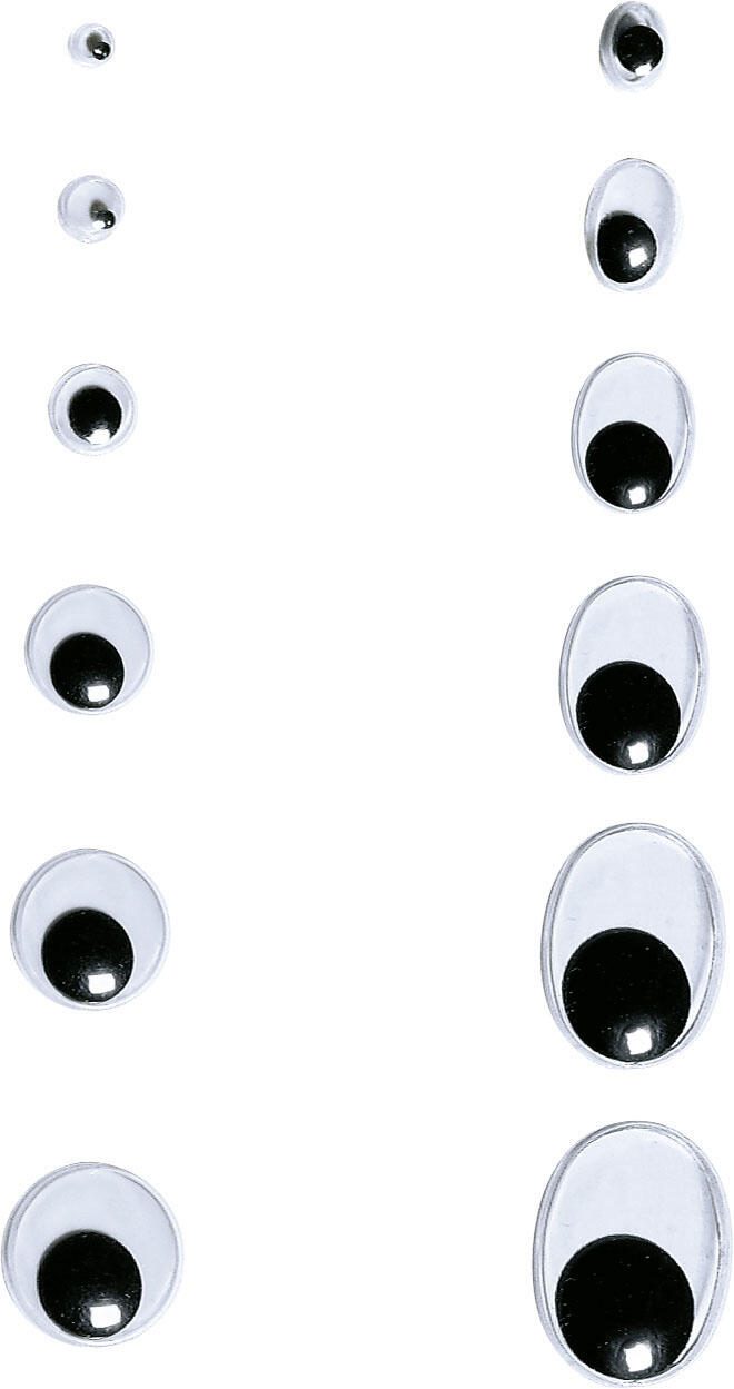 - Besonderheiten: 6 Größen (5 mm = 30 St., 7 mm = 20 St., 10 mm = 10 St., 14 mm = 10 St., 7x5 mm = 25 St., 10x7 mm = 10 St.); Wackelaugen mit beweglicher Pupille