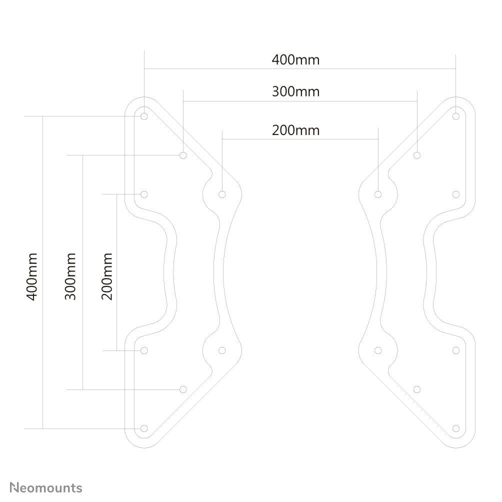 Die Neomounts Vesa-Adapterplatte Modell FPMA-VESA440, ermöglicht die Aufhängung einer VESA-Halterung mit 200x200 mm Schnittstelle, mit Displays mit VESA Lochmuster 300x300, 400x200 und 400x400. Ideal, wenn Ihr Flachbildschirm andere VESA-Lochmuster an der Wand-, Schreibtisch-oder Deckenhalterung braucht. Neomounts FPMA-VESA440 eignet sich für Bildschirme bis 60" (152 cm). Die Tragfähigkeit dieses Produkts ist für einen 35 kg Bildschirm. Tiefe dieser Adapterplatte ist nur 3 Millimeter. Der Adapter eignet sich für Bildschirme mit VESA Lochmuster 300x300, 400x200 und 400x400 mm. Verschiedene Lochmuster können mit Neomounts VESA Adapterplatten abgedeckt werden. Das benötigte Befestigungsmaterial ist im Lieferumfang enthalten.
