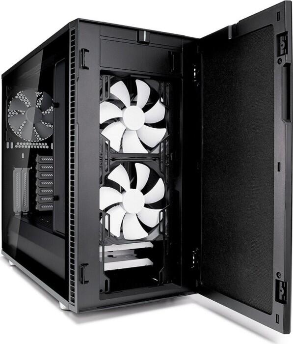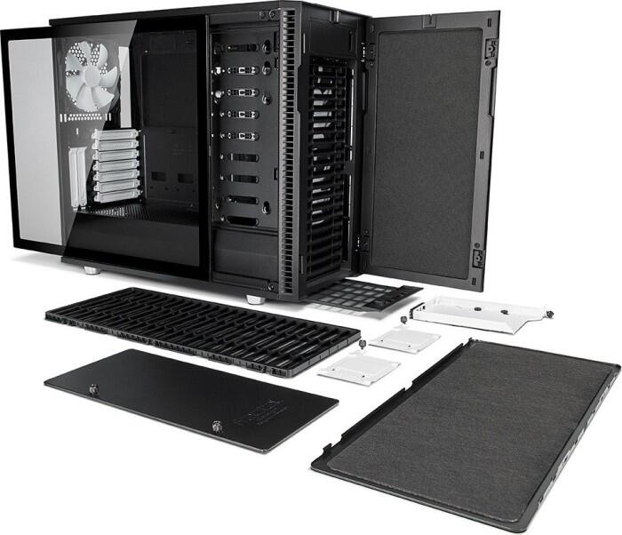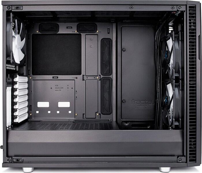 Der größte Schritt in der Geschichte der weltbekannten Define SerieSeitenteile aus rahmenlosem gehärteten Glas und mit hochwertigem Dämmmaterial versehenen Stahl sowie praktischem Push-To-Lock Verriegleungsmechanismus umgeben einen komplett neu gestalteten Innenraum, der eine beispiellose Hardwarekompatibilität sowie eine enorme Speicherflexibilität bietet. Sechs 3,5“/2,5“ und zwei 2,5“ Laufwerke können dabei in zahlreichen Konfigurationen im Gehäuse verbaut werden.