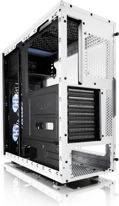 • weißes Midi-Tower-Gehäuse mit Acrylfenster und beleuchteten Lüftern