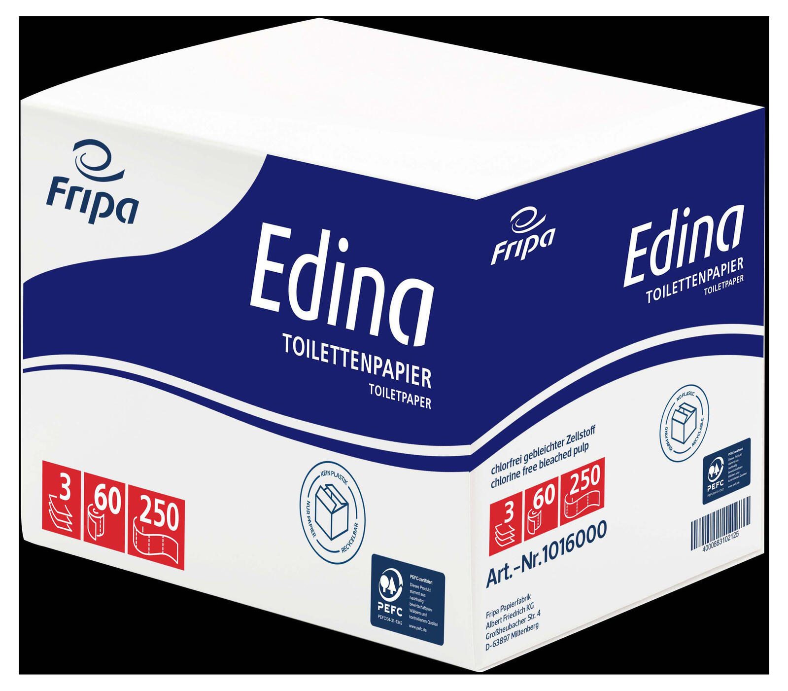Die Fripa ToiPa Select 3lg.60x250B Kleinrolle ist Toilettenpapier in hochweißer Farbe. Es handelt sich um 3-lagiges Toilettenpapier aus hochwertigem Zellstoff. Mit der Serienbezeichnung "Edina" bietet es eine sehr gute Papier-Qualität. Die Marke Fripa steht für erstklassige Herstellung.