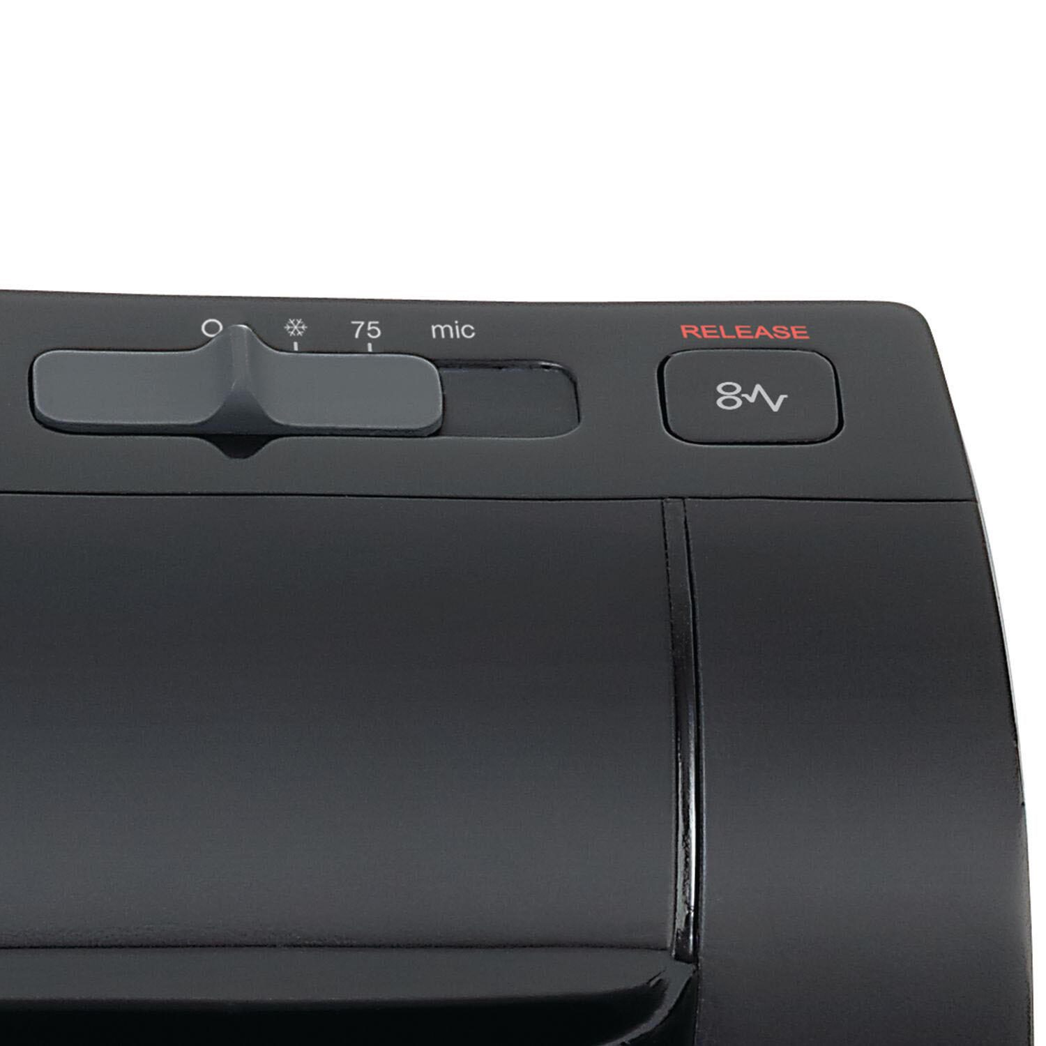 Das GBC Laminiergerät Fusion 1000L in elegantem Schwarz ist die ideale Lösung für alle, die ihre Dokumente, Fotos und wichtigen Unterlagen professionell schützen möchten. Mit seiner Fähigkeit, Formate bis DIN A4 zu laminieren, bietet dieses Gerät eine vielseitige Anwendung für Zuhause, im Büro oder in der Schule. Ein herausragendes Merkmal des Fusion 1000L ist der integrierte Überhitzungsschutz, der für zusätzliche Sicherheit sorgt und das Gerät vor möglichen Schäden bewahrt. Dies ermöglicht dir, auch bei längeren Laminierarbeiten ein sorgenfreies Erlebnis zu genießen. Die Folienstärke von 75 Mikron pro Seite garantiert eine robuste und langlebige Versiegelung, die deine Dokumente vor Abnutzung, Feuchtigkeit und anderen schädlichen Einflüssen schützt. Mit einer Leistungsaufnahme von 250 W arbeitet das Laminiergerät effizient und schnell, sodass du deine Laminierungen in kürzester Zeit abschließen kannst. Egal, ob du wichtige Zertifikate, kreative Bastelprojekte oder persönliche Erinnerungen laminieren möchtest, der GBC Fusion 1000L liefert stets hervorragende Ergebnisse. Die benutzerfreundliche Handhabung und das ansprechende Design machen das Laminiergerät zu einem unverzichtbaren Werkzeug für alle, die Wert auf Qualität und Langlebigkeit legen. Vertraue auf die bewährte Qualität von GBC und erlebe, wie einfach es ist, deine Dokumente professionell zu laminieren und zu schützen.Technische Daten