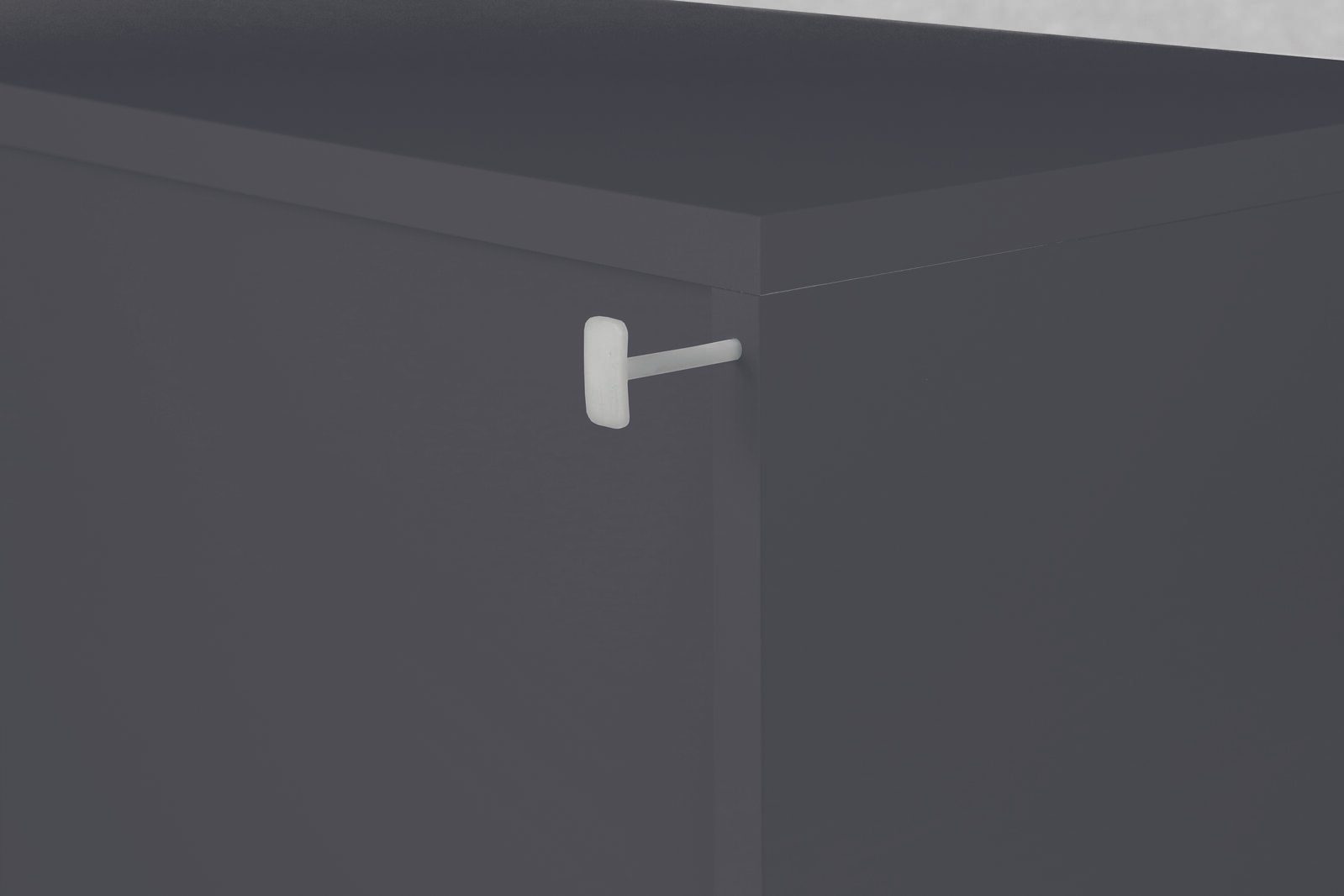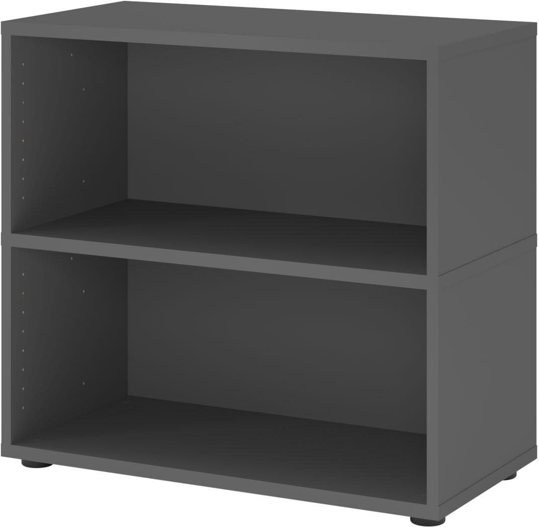Das HAMMERBACHER FW Regal 2OH in elegantem Grafit ist die perfekte Lösung für dein Zuhause oder dein Büro. Mit seinen kompakten Maßen von 80,0 x 40,0 x 74,6 cm fügt sich das Regal nahtlos in jede Umgebung ein und bietet gleichzeitig ausreichend Platz für Akten, Bücher oder dekorative Elemente. Ein herausragendes Merkmal dieses Regals ist das innovative, werkzeuglose Korpusmontagesystem, das eine einfache und schnelle Montage ermöglicht. Durch das praktische Klicksystem kannst du das Regal in Sekundenschnelle aufbauen und bei Bedarf ebenso unkompliziert wieder demontieren. Dies ist besonders vorteilhaft, wenn du oft umräumen oder das Regal an einem anderen Ort aufstellen möchtest. Die Höhenverstellbarkeit der vier Stellfüße bis zu 1,0 cm sorgt dafür, dass das Regal auch auf unebenen Böden stabil steht. Hergestellt aus robuster Spanplatte, bietet das HAMMERBACHER FW Regal eine langlebige und stabile Lösung für deine Aufbewahrungsbedürfnisse. Der stilvolle Farbton Grafit verleiht dem Regal eine moderne und zeitlose Optik, die sich mühelos in verschiedene Einrichtungsstile integrieren lässt. Ob im Arbeitszimmer, Wohnzimmer oder Flur, das FW Regal 2OH ist nicht nur funktional, sondern auch ein echter Blickfang. Mit der Serienbezeichnung FlexWall ist dieses Regal eine ideale Wahl für alle, die Wert auf Qualität und Design legen. Entdecke die Vielseitigkeit und den Komfort, den das HAMMERBACHER FW Regal 2OH grafit in dein Zuhause bringt.Technische Daten