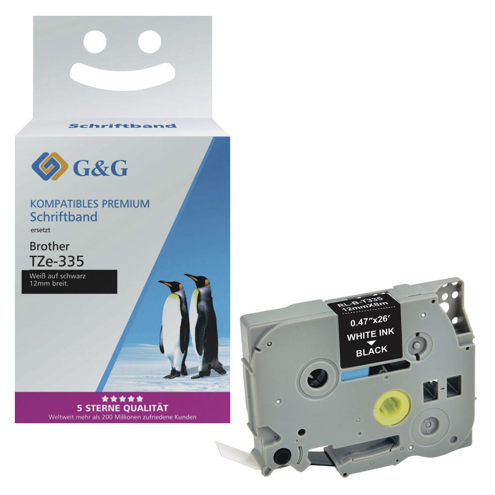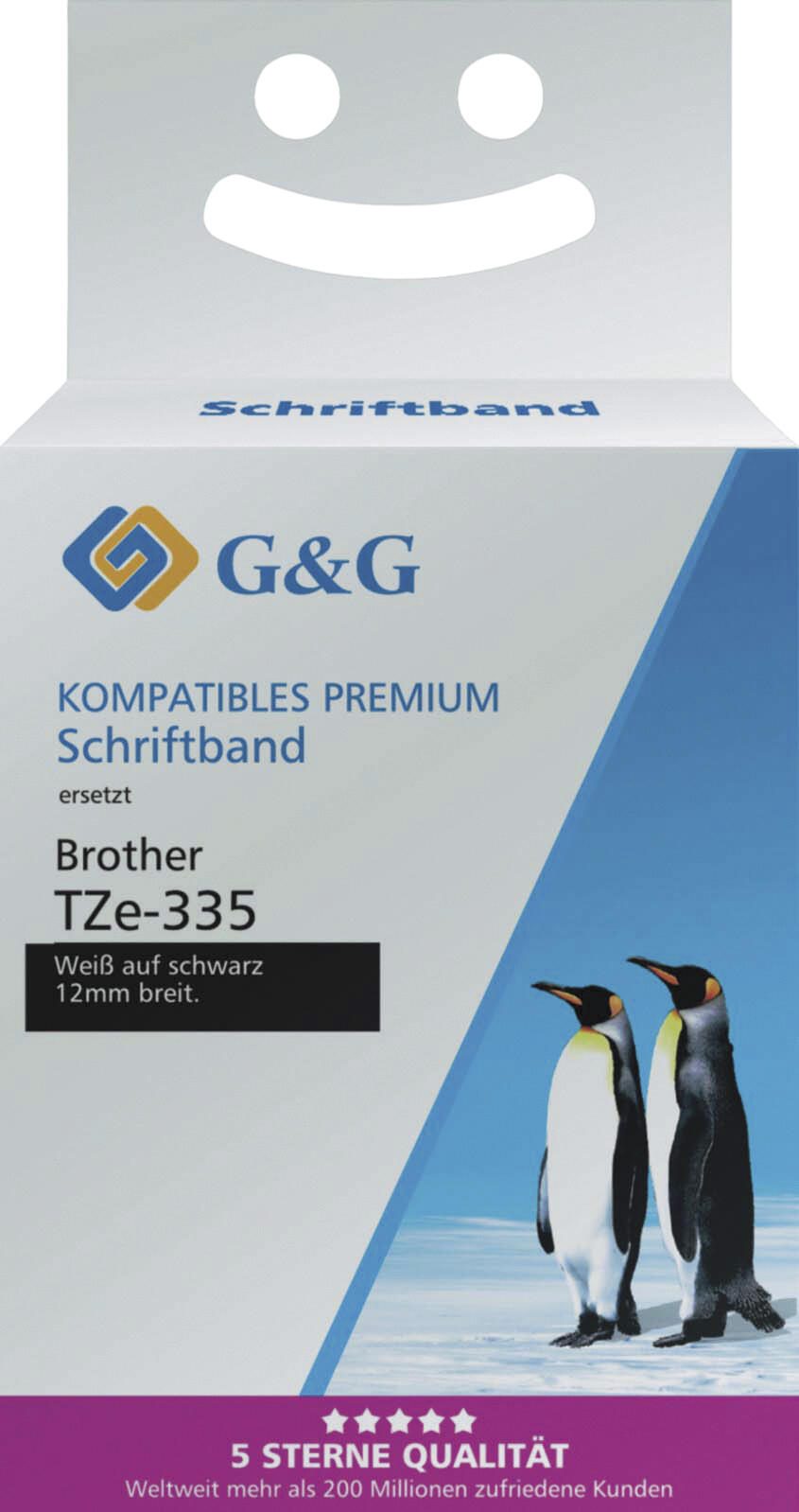 G&G Schriftband ersetzt Brother TZe-335, 12 mm, weiß auf schwarz