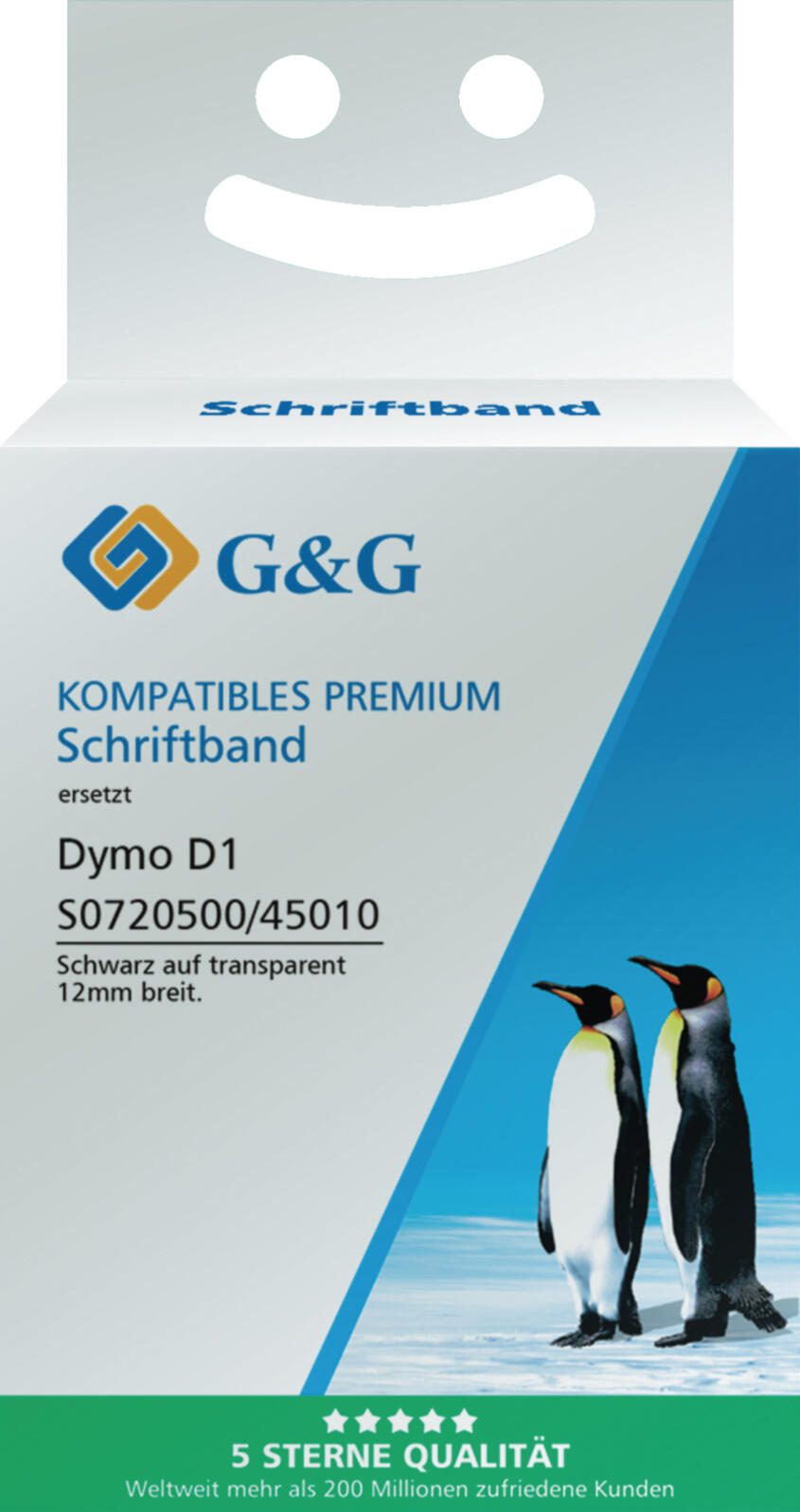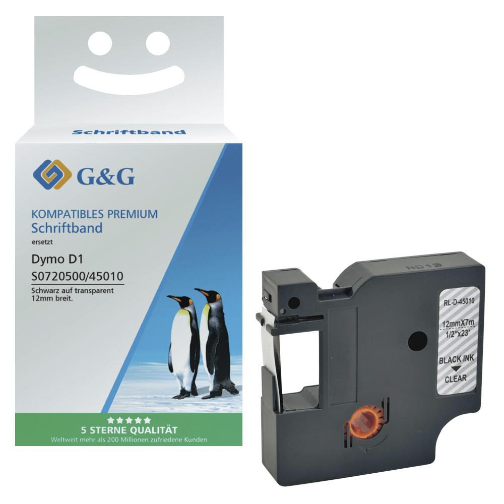 G&G Schriftband ersetzt Dymo D1 S0720500/45010, 12,0 mm, schwarz auf transparent