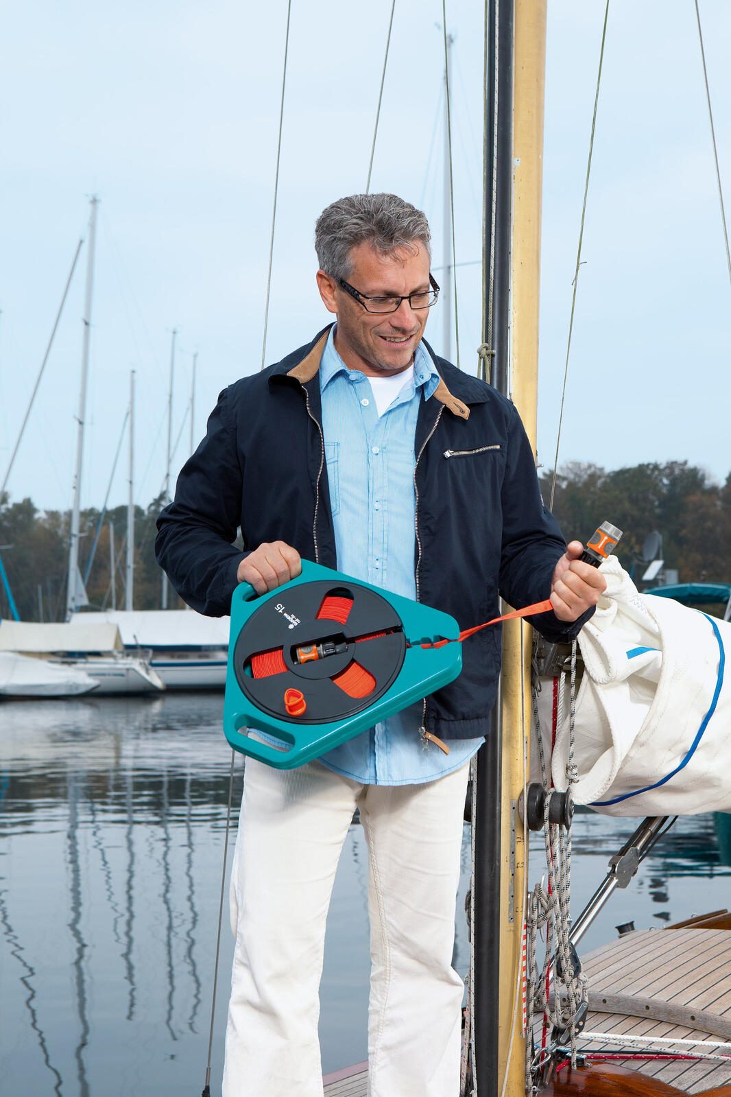 Der Gardena Flachschlauch 15m aus der Classic Roll-fix Serie überzeugt durch seine kompakte Bauweise, die ihn besonders ideal für unterwegs macht. Dieses praktische Gartenschlauchsystem ist in den Farben Schwarz, Orange und Türkis erhältlich und bietet eine platzsparende Lösung für die Bewässerung in Garten, auf dem Balkon oder bei Outdoor-Aktivitäten.