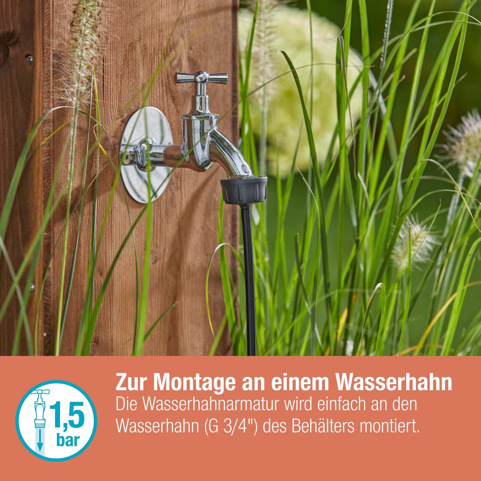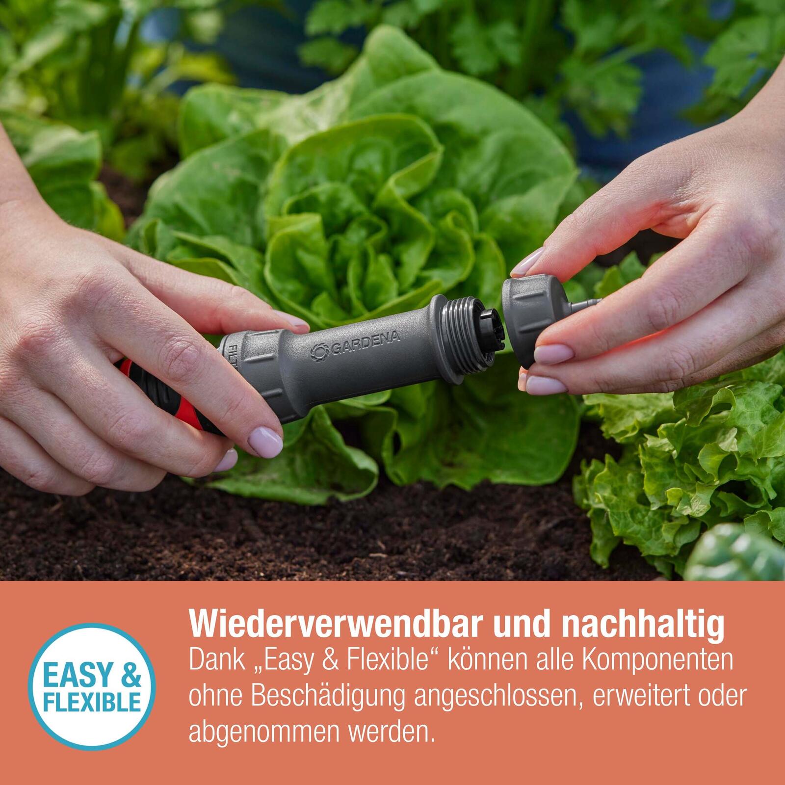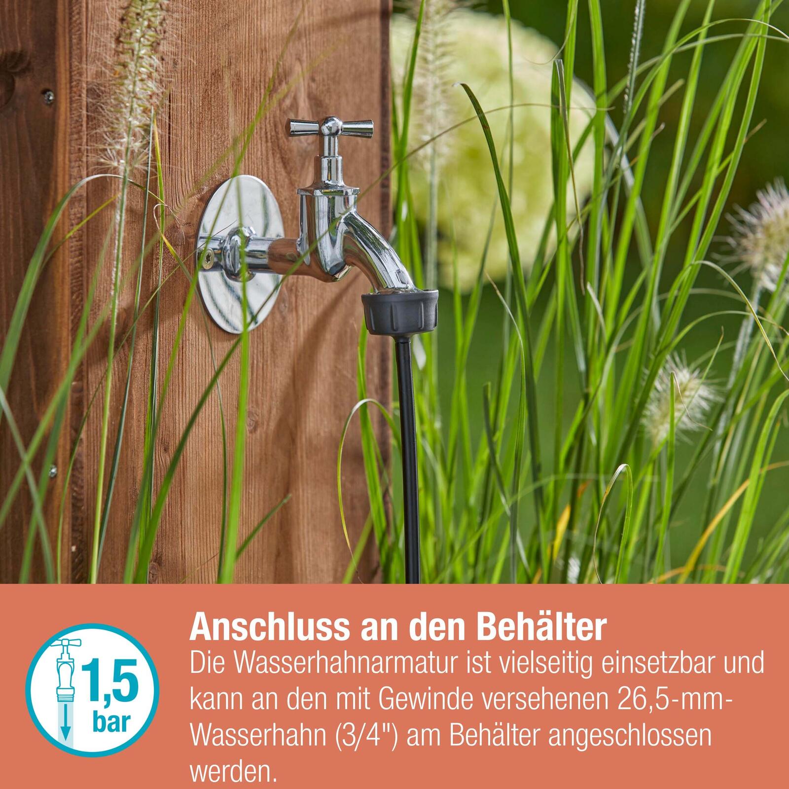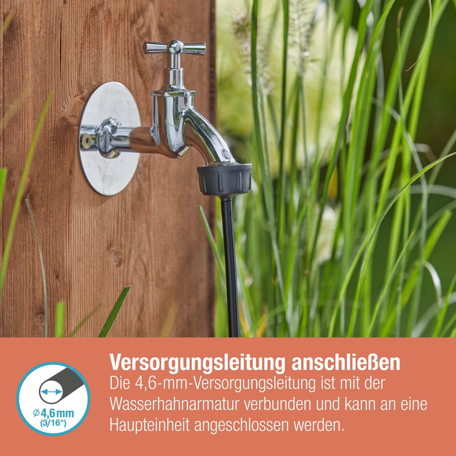 Der GARDENA Hahnanschluss für das Micro-Drip-System mit einem Durchmesser von 4,6 mm (3/16") ist die ideale Lösung für eine effiziente Bewässerung deiner Pflanzen. Mit einem Gesamtinhalt von einem Hahn-Anschluss bietet dieses Produkt eine zuverlässige Verbindung, die für verschiedene Anwendungen geeignet ist. Hergestellt aus hochwertigem Kunststoff in elegantem Schwarz, vereint der Hahnanschluss Funktionalität und ansprechendes Design. Dieser Hahnanschluss ist speziell konzipiert, um das Verlegerohr Flex mit einem Durchmesser von 13 mm (1/2") mit dem Basisgerät 1000/2000 (Artikelnummer 13333/13310) zu verbinden. Darüber hinaus ermöglicht er einen direkten Anschluss an einen Zisternen-Wasseranschluss mit einem Durchmesser von 26,5 mm (3/4"). Dies ist besonders vorteilhaft, wenn du eine nachhaltige Bewässerungslösung suchst, die Wasser aus deiner Zisterne nutzt. Die einfache Handhabung und die robuste Bauweise machen den GARDENA Hahnanschluss zu einem unverzichtbaren Bestandteil deines Bewässerungssystems. Durch die Verwendung von Kunststoff ist das Produkt leicht und dennoch langlebig, was es ideal für den Einsatz im Garten macht. Du kannst sicher sein, dass deine Pflanzen optimal mit Wasser versorgt werden, während du gleichzeitig die Vorteile einer benutzerfreundlichen Installation genießt. Mit dem GARDENA Hahnanschluss für das Micro-Drip-System erhältst du ein Produkt, das nicht nur praktisch, sondern auch äußerst effizient ist. Die Möglichkeit, verschiedene Wasserquellen zu nutzen, bringt Flexibilität in deine Gartenbewässerung und trägt zur Schonung von Ressourcen bei. Vertraue auf die Qualität und Innovation von GARDENA, um deine Gartenpflege zu optimieren.Technische Daten